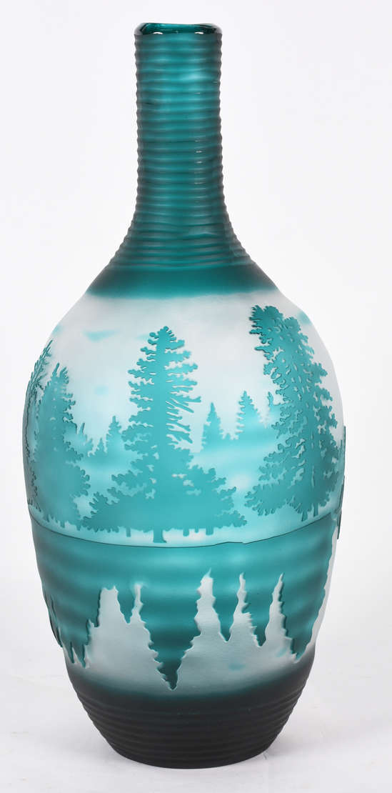 Duas peças de cristal, sendo : Vaso com flores lapidadas (duas letras na borda inferior, assinatura?) e bowl fumê Art...