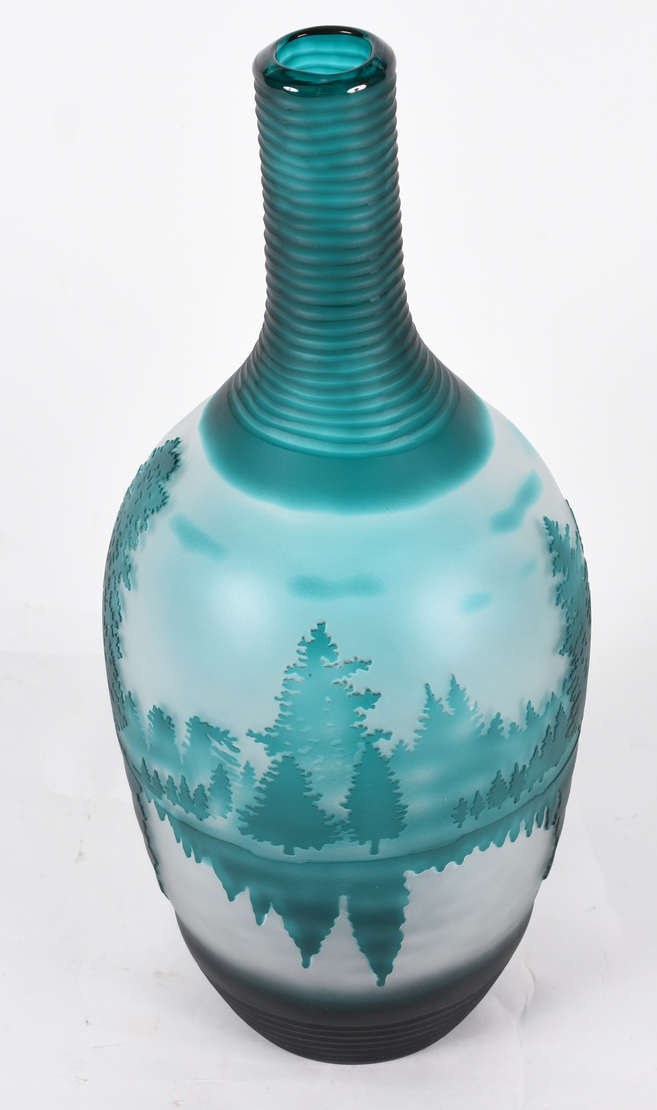 Vaso de vidro decorativo trabalhado em gomos na cor lilás degradé.