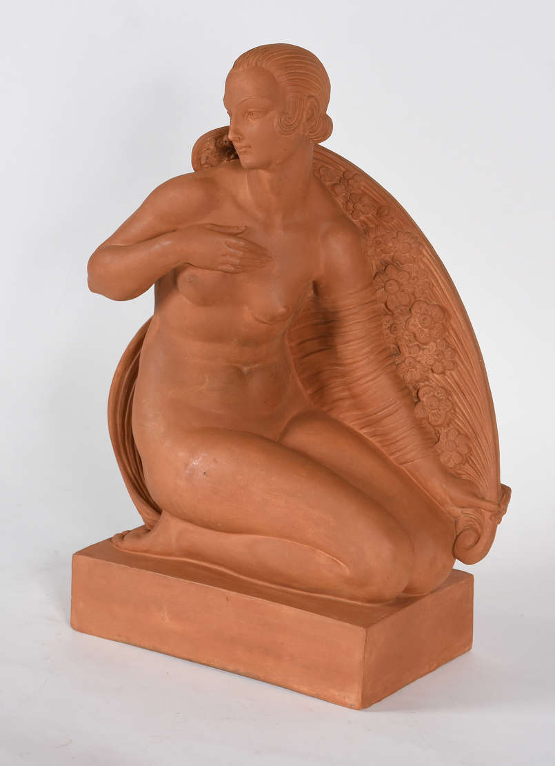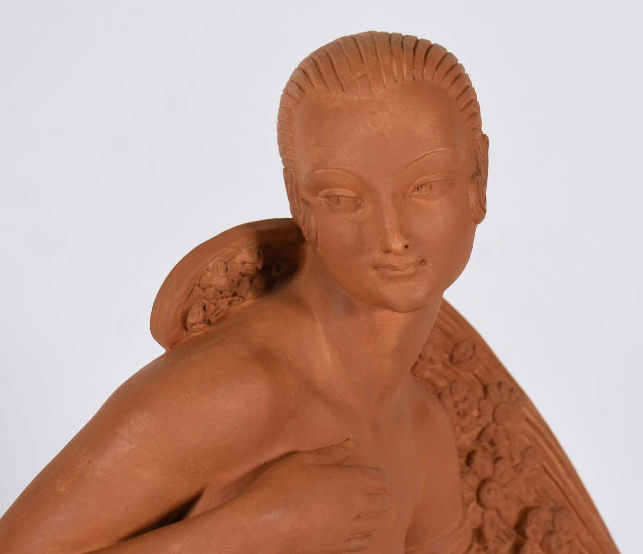 Estatueta de resina policromada. estilo ART DECO, representando figura feminina - reprodução ( sem a mão )