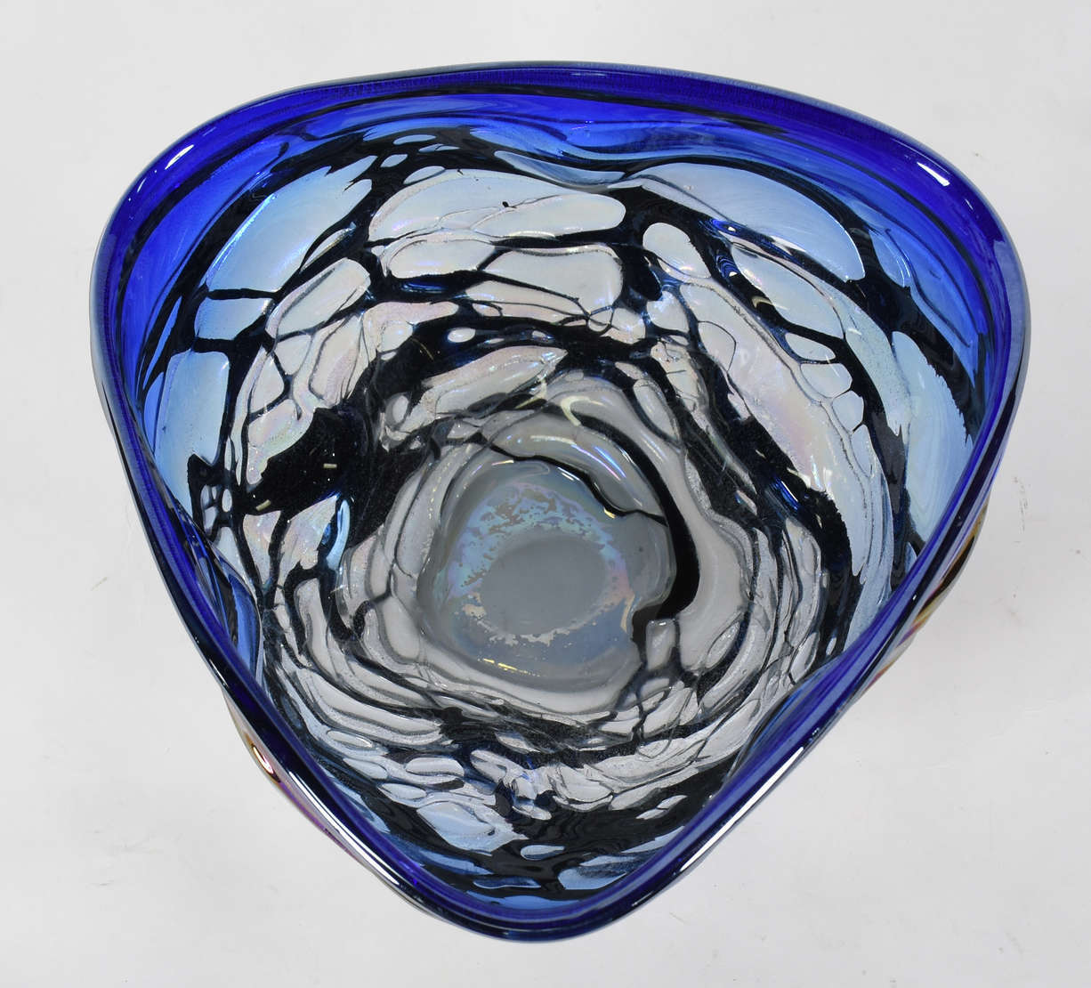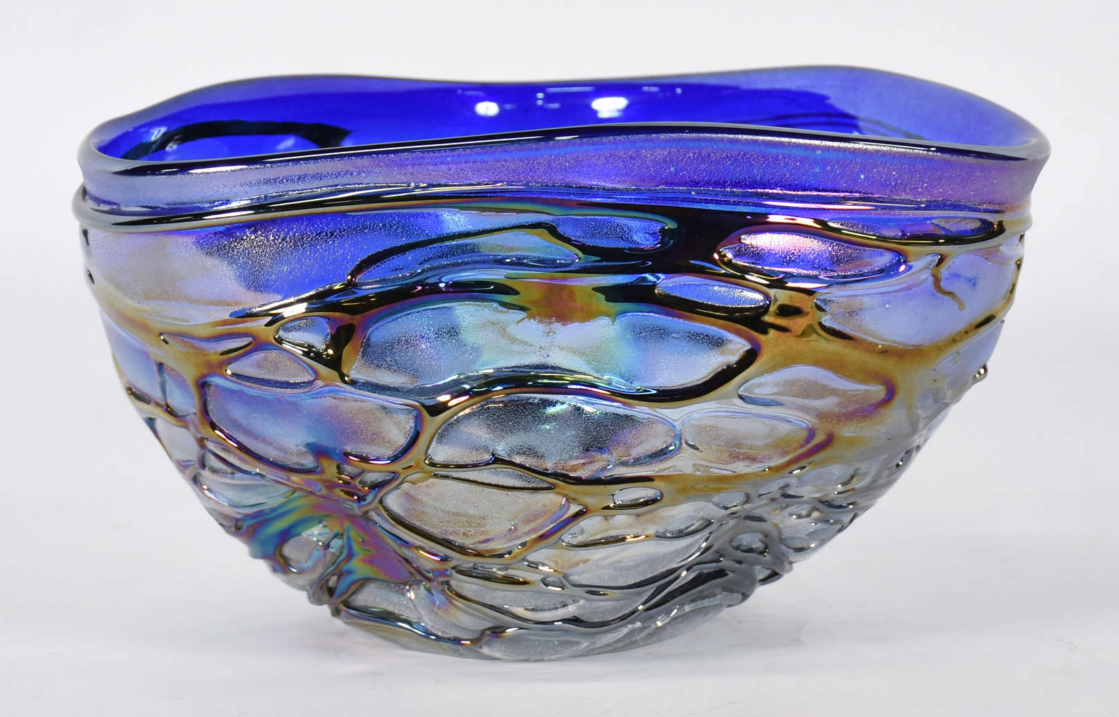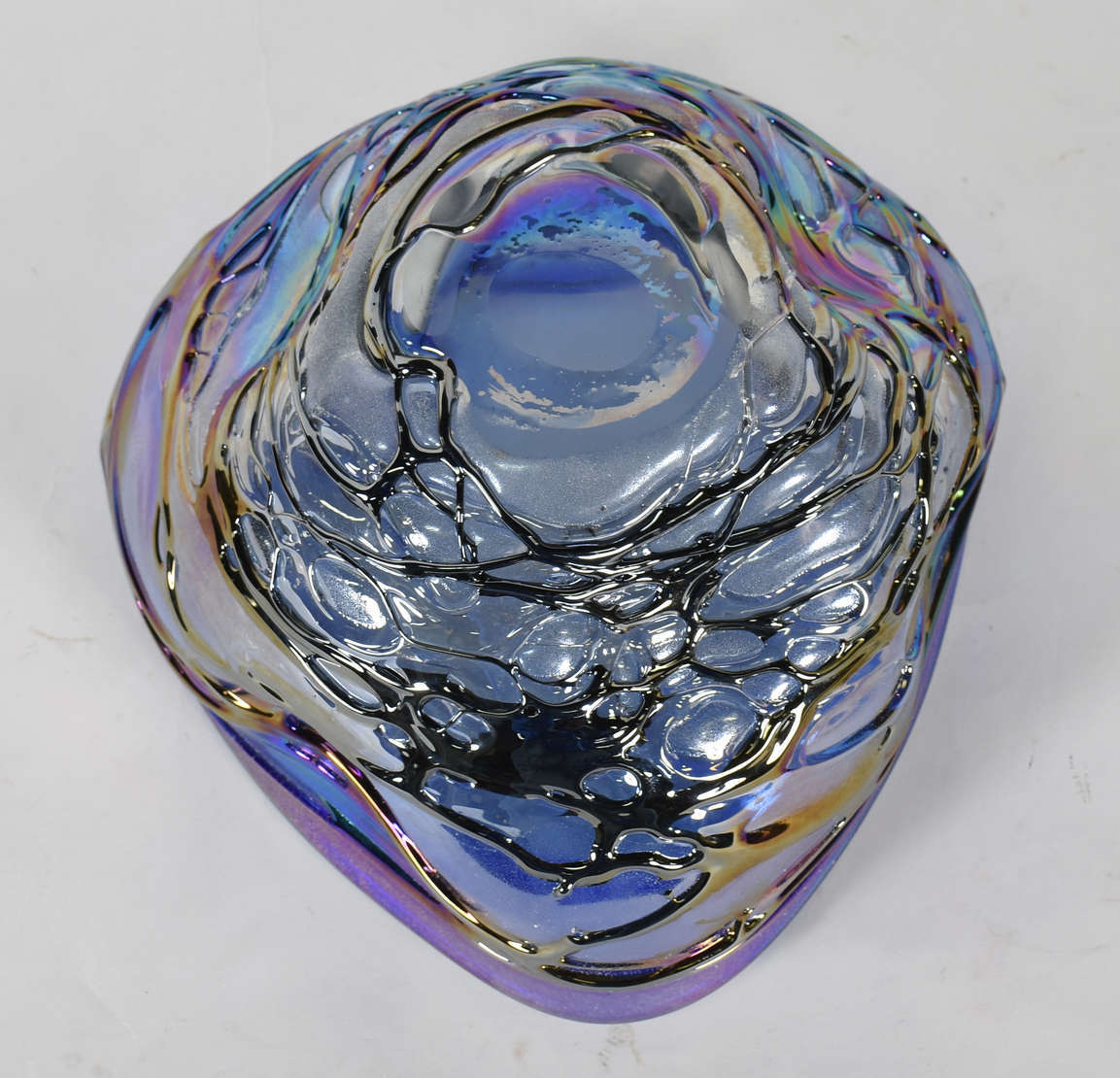 Duas peças, sendo uma vaso de Murano com detalhe na cor vinho e um bowl de cristal com borda trabalhada em relevo fl...