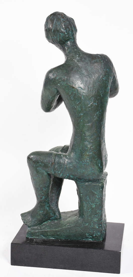 Pequena escultura de bronze representando " mulher na banheira". Curiosidade: quando toca o coque do cabelo a língua ...