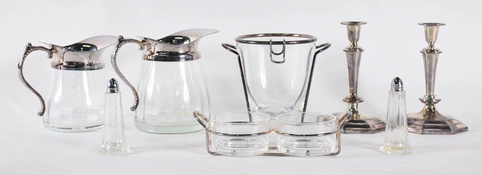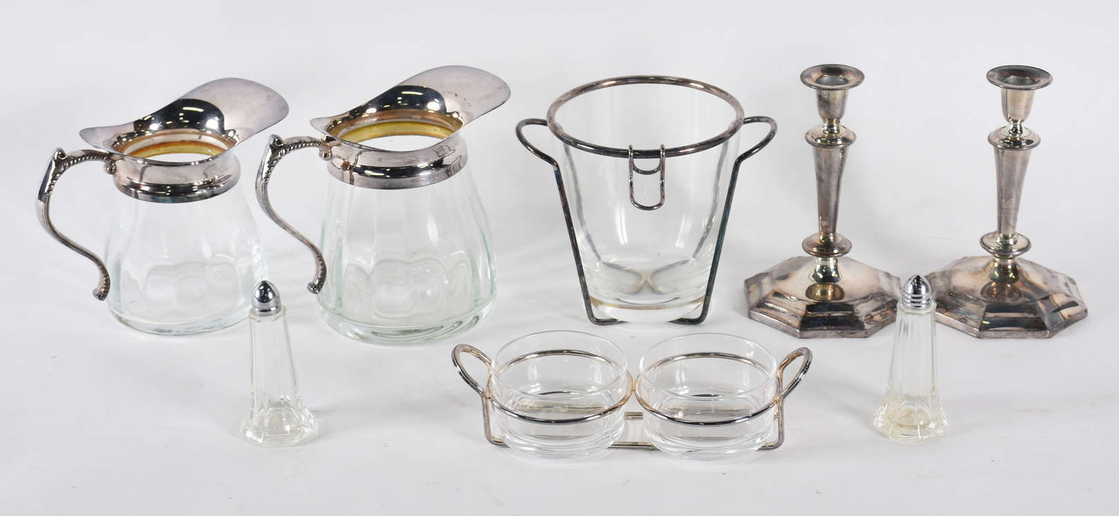 Oito peças diversas de metal : açucareiro WMF, 4 descansos de talher Christofle , paliteiro WMF , paliteiro Christofl...