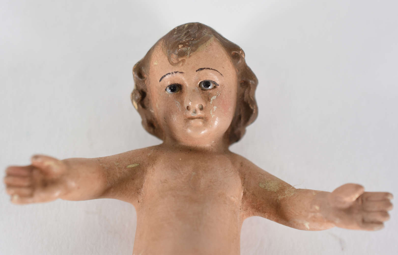 Belíssima Imagem de Menino Jesus do Monte, madeira policromada, Bahia, século XIX. (uma das mãos com dedinhos quebrad...