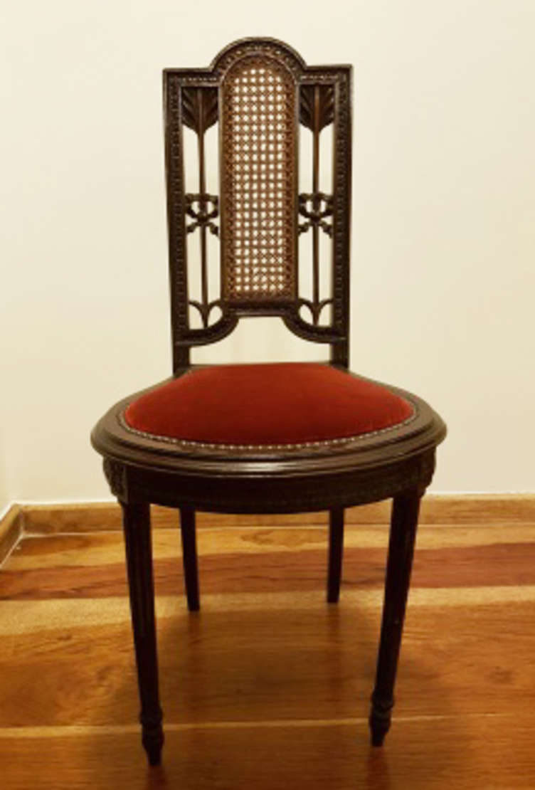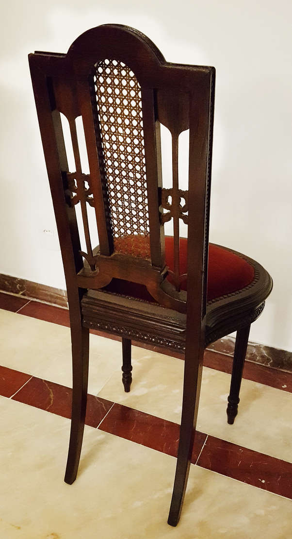Par de cadeiras estilo D. José de jacarandá, assentos de couro.