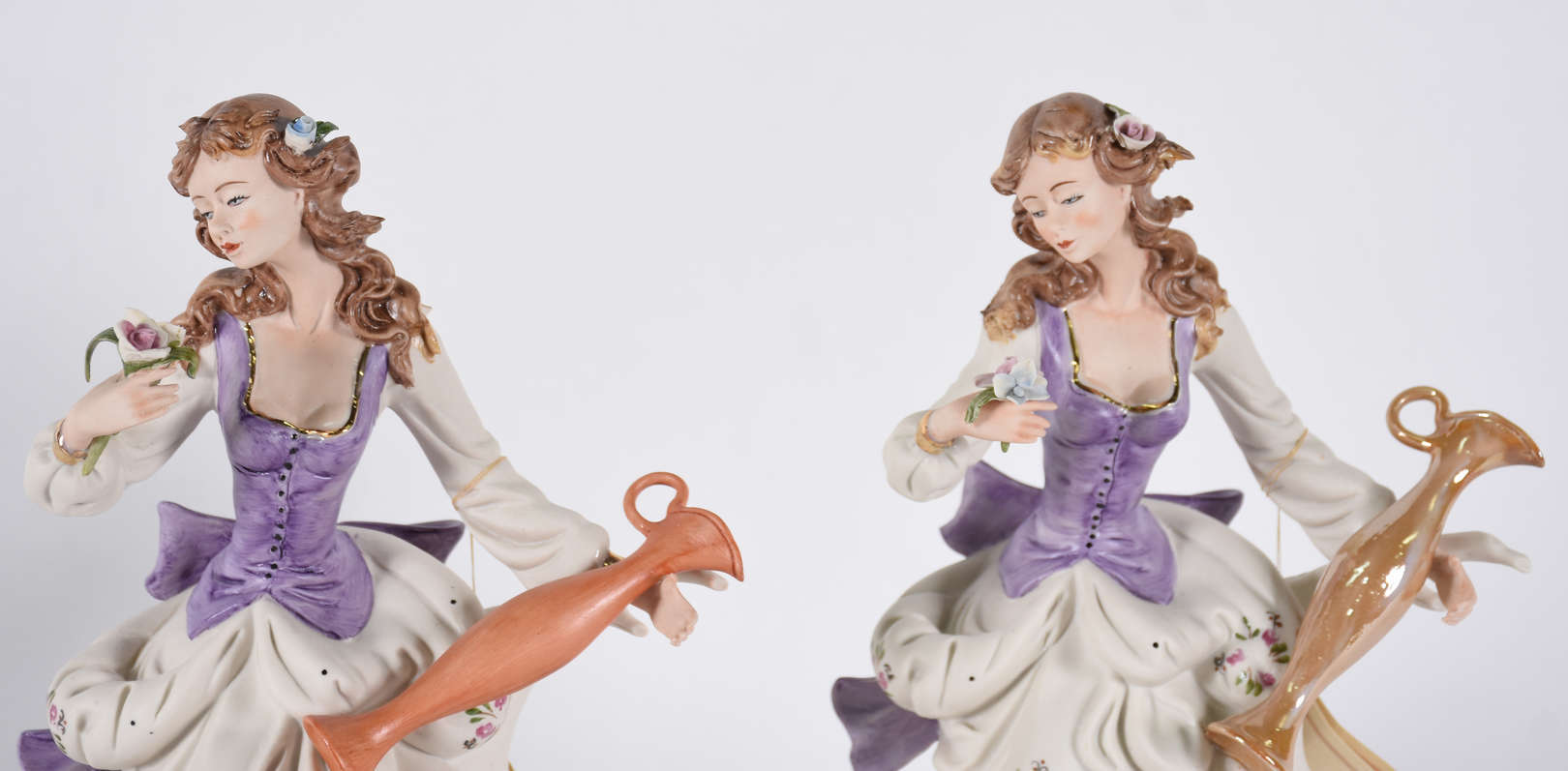 Duas meninas com cântaros - Esta estatueta foi elaborada com a mais pura porcelana de Limoges - França . Toque final de Teresa Linhares, a grande mestre em porcelana artística, reconhecida tanto em Portugal como nos USA.