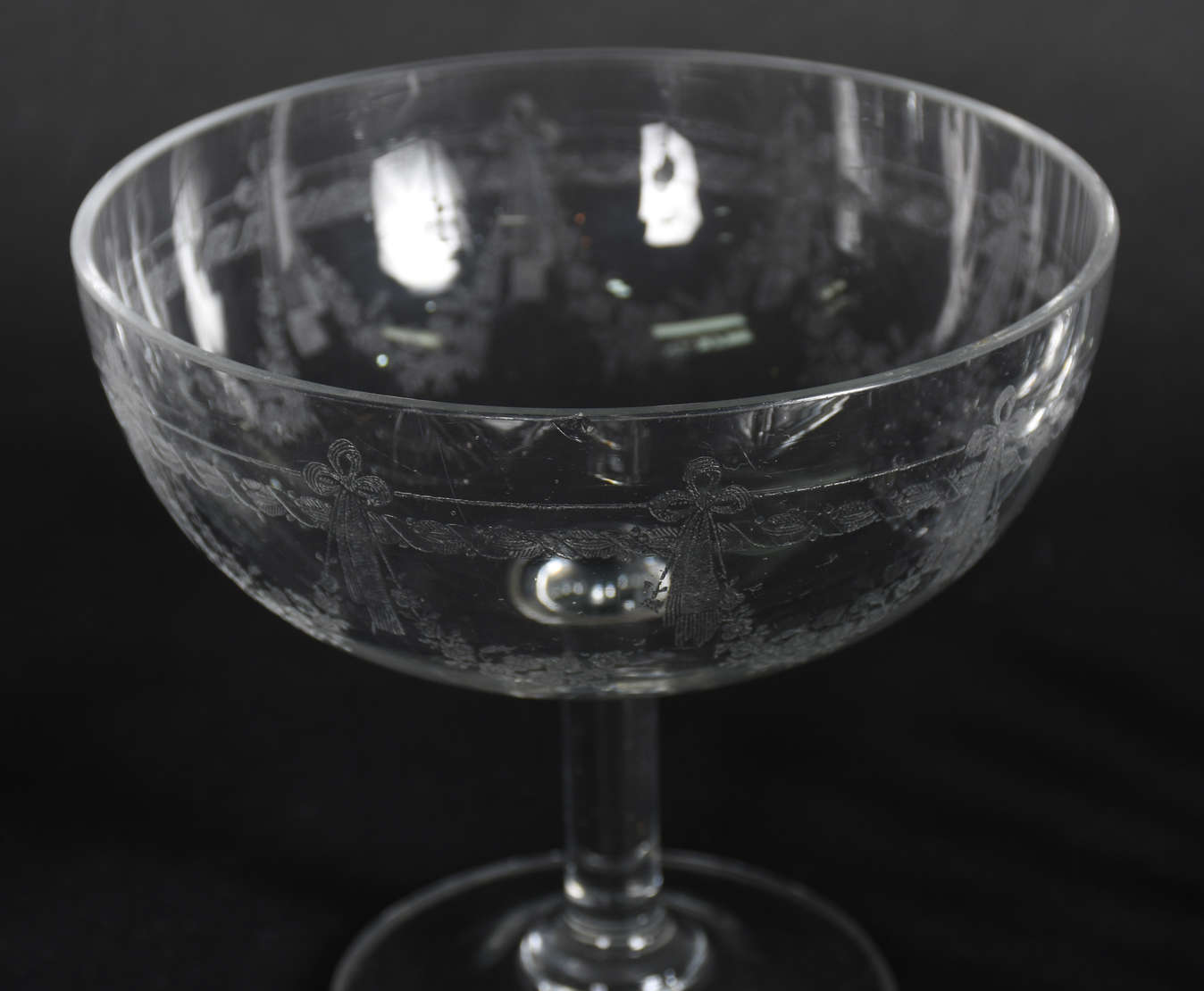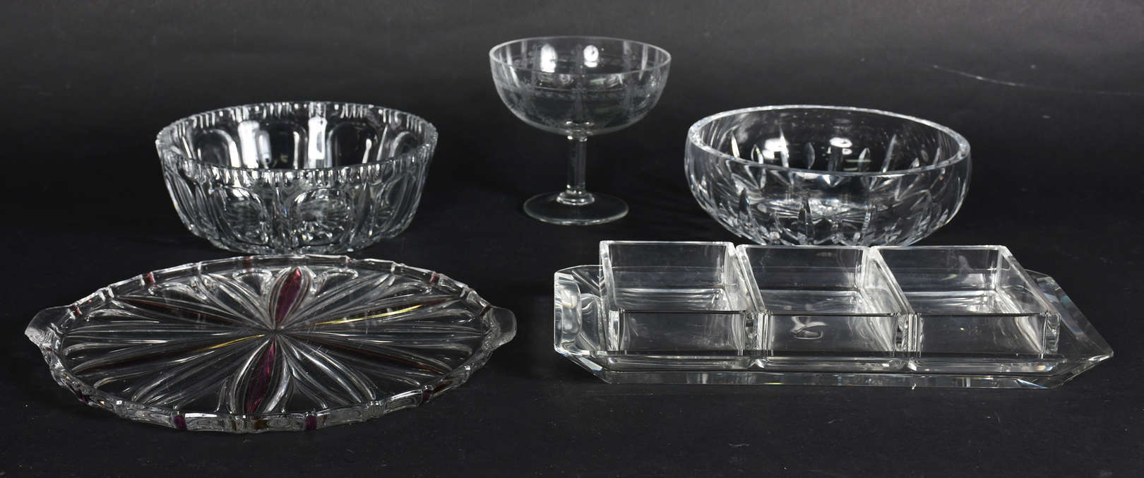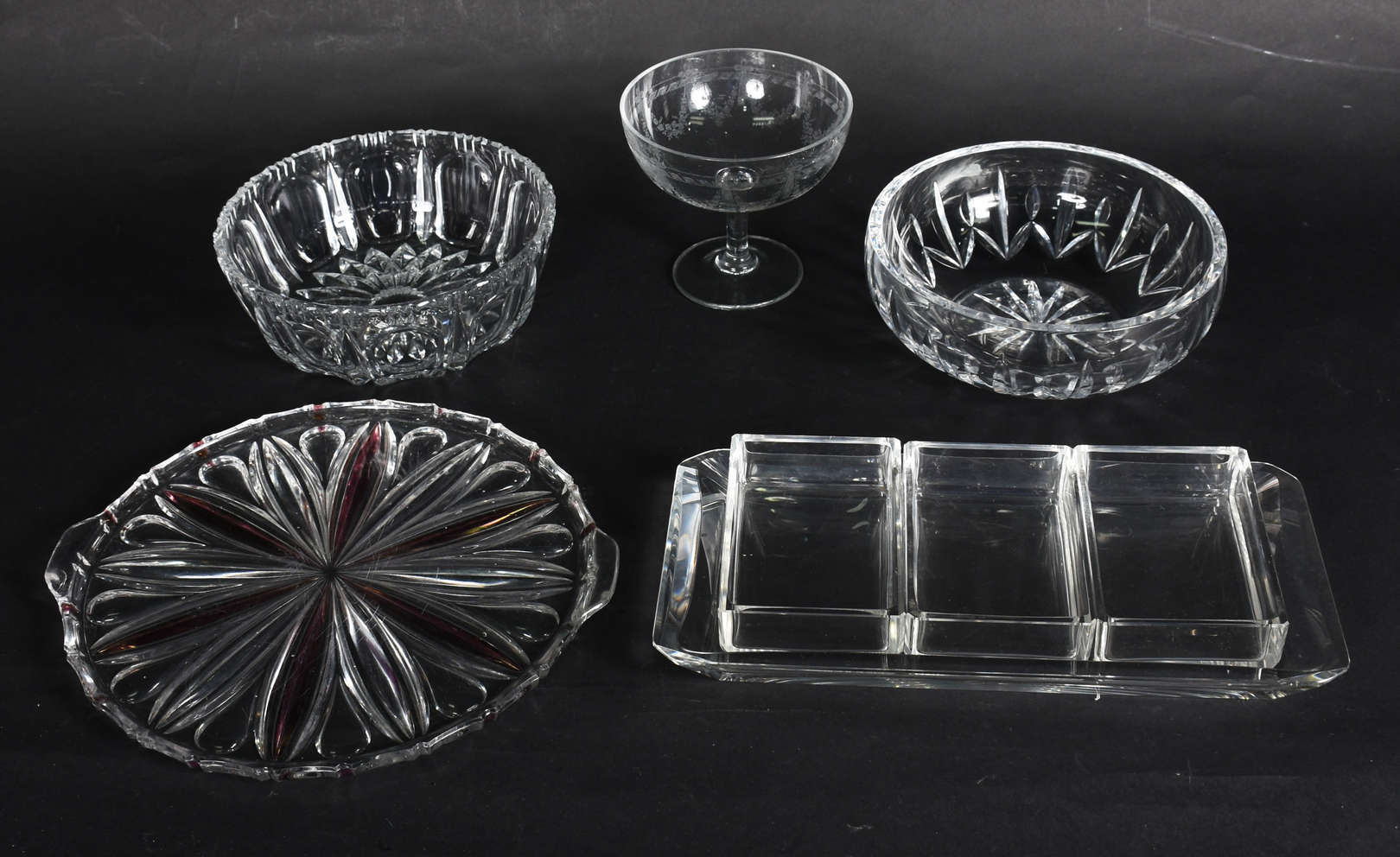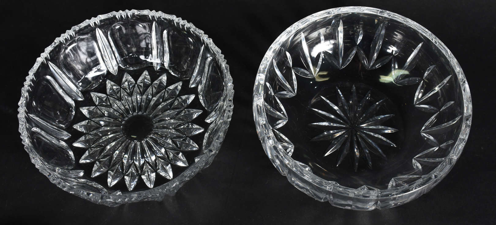 Duas fruteiras de cristal tcheco lapidado, uma delas com pé de metal.