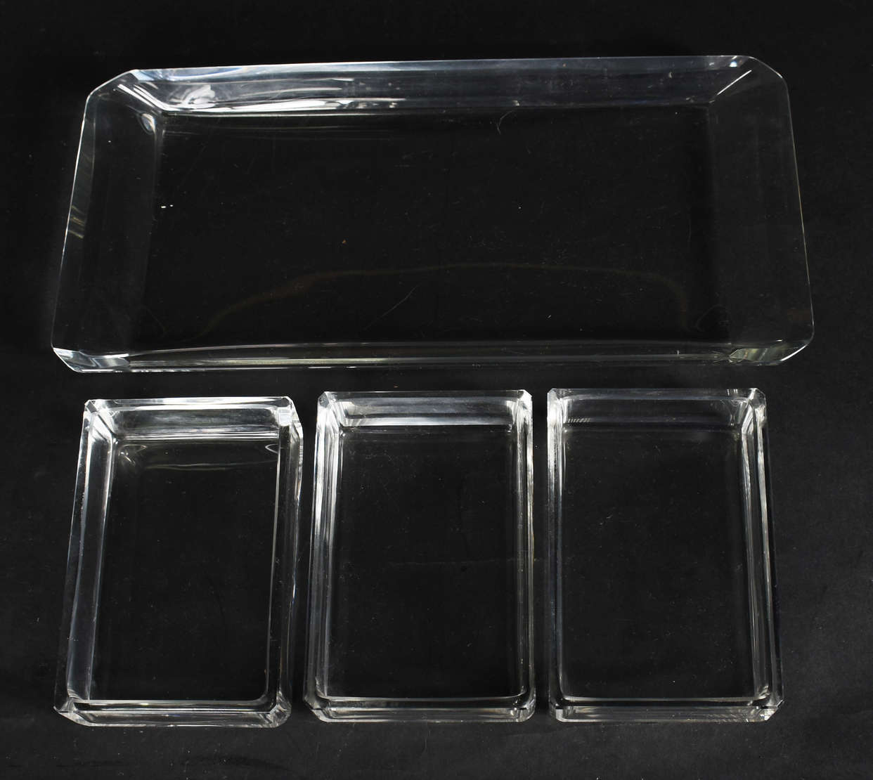 Três peças diversas de cristal, sendo dois cinzeiros redondos lapidados e um porta caviar com guarnição de metal prat...