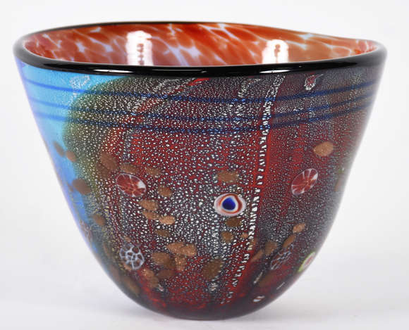 Cachepot de murano azul e marrom com pó de ouro .