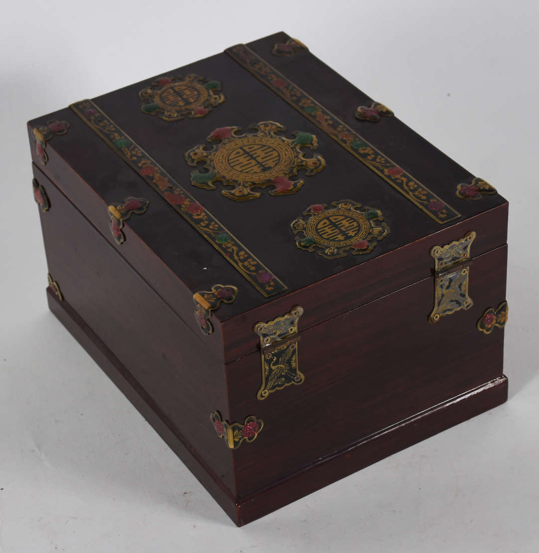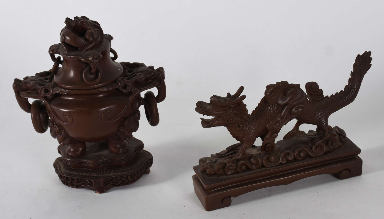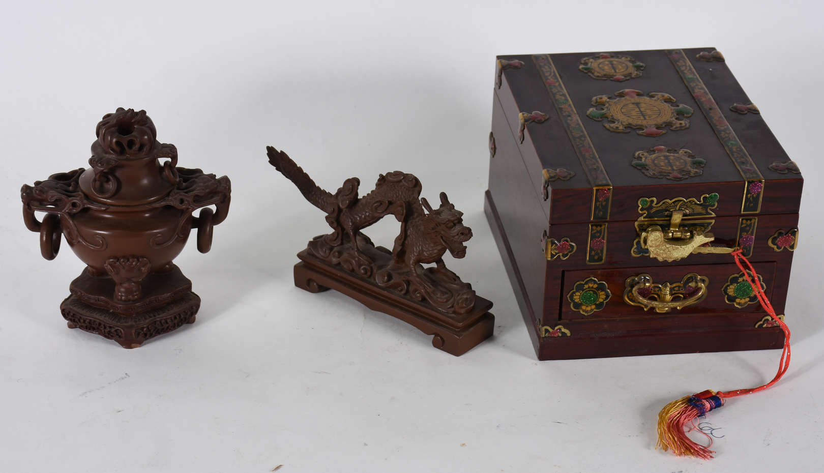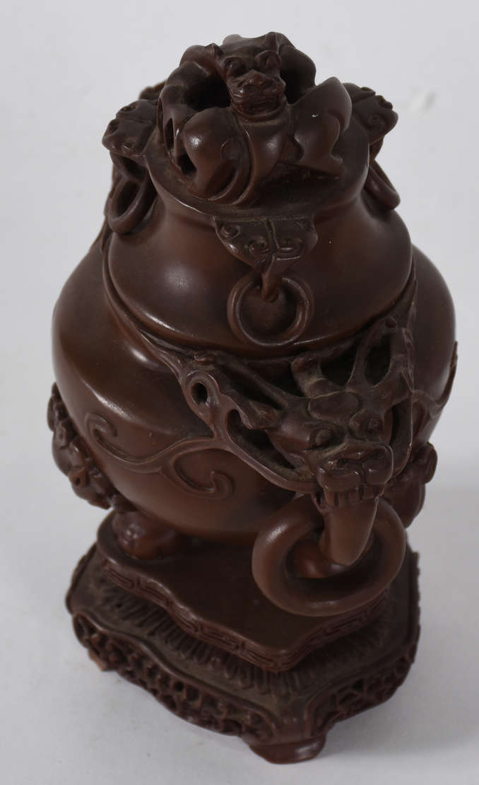 Par de marmitas orientais de laca com tampa de porcelana (1 tampa no estado)