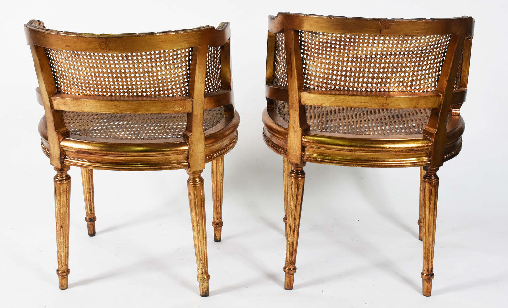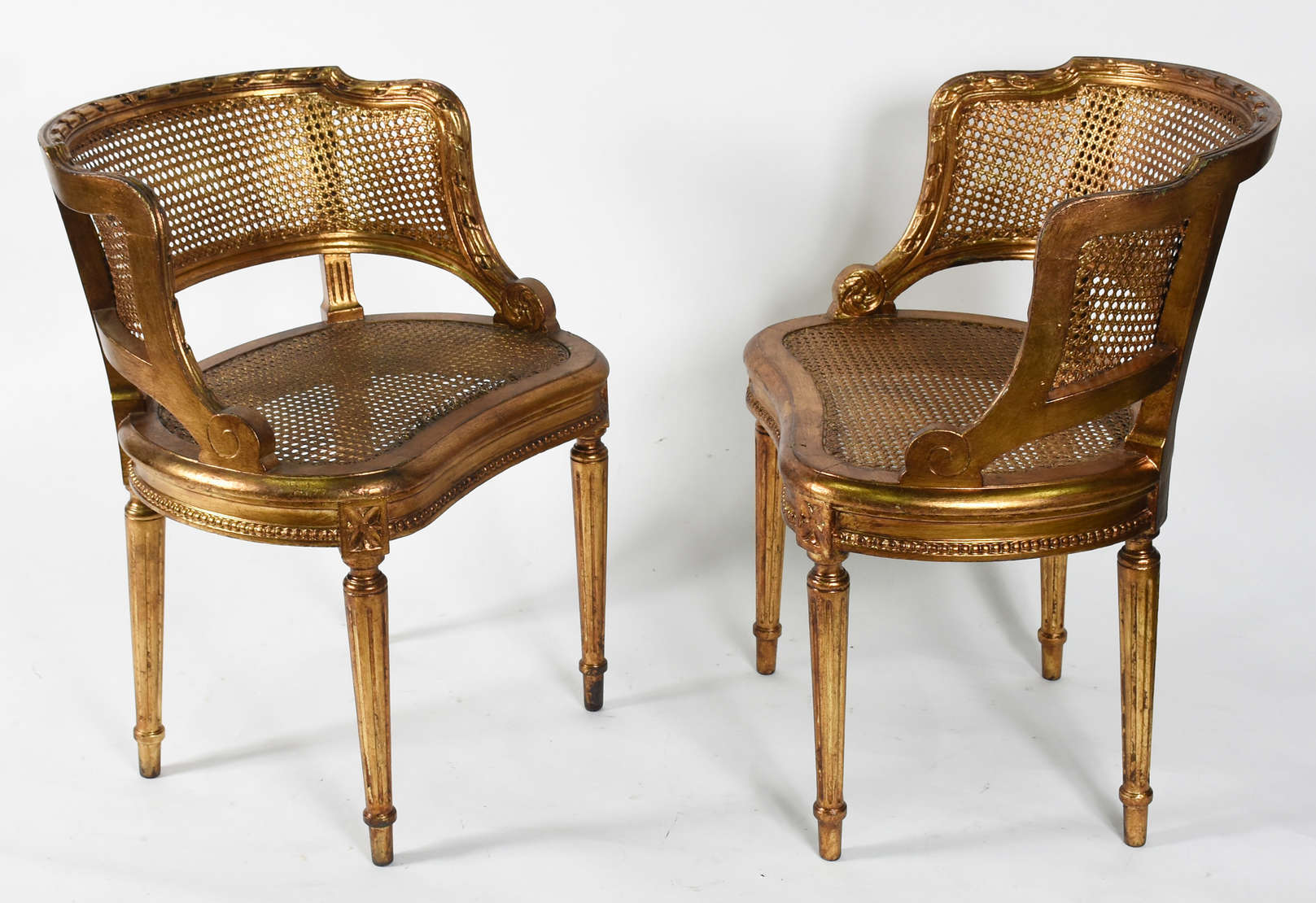 Par de cadeiras estofadas com tecido adamascado bege, pés de madeira torneada .