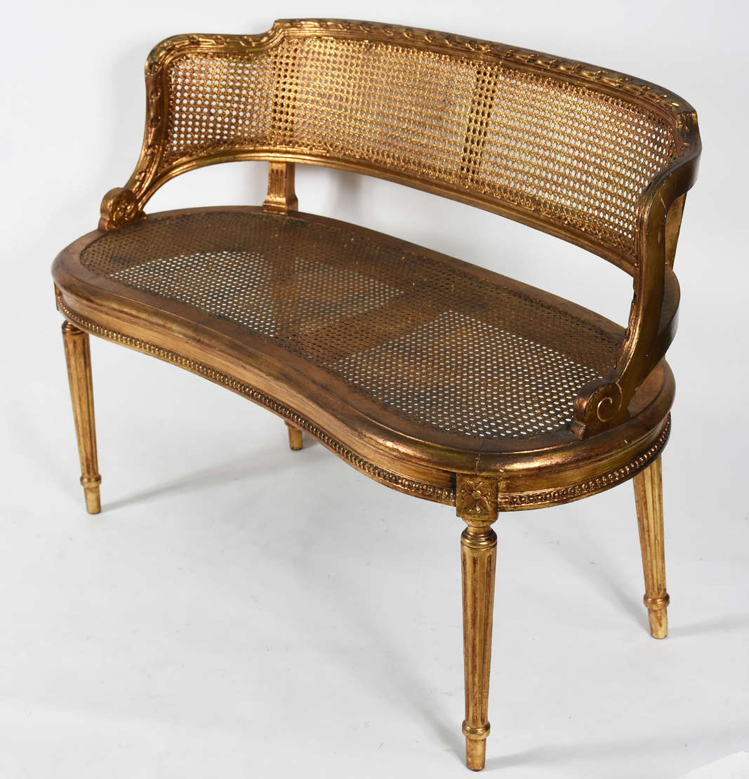 Canapé de jacarandá com assento de palhinha e encosto trabalhado.