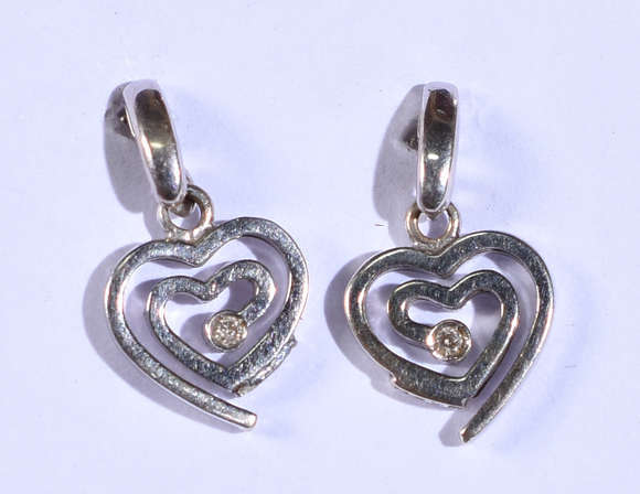 Par de brincos de ouro 18k branco com 2 brilhantes tipo coração ( Por questão de segurança a peça não se encontra na...