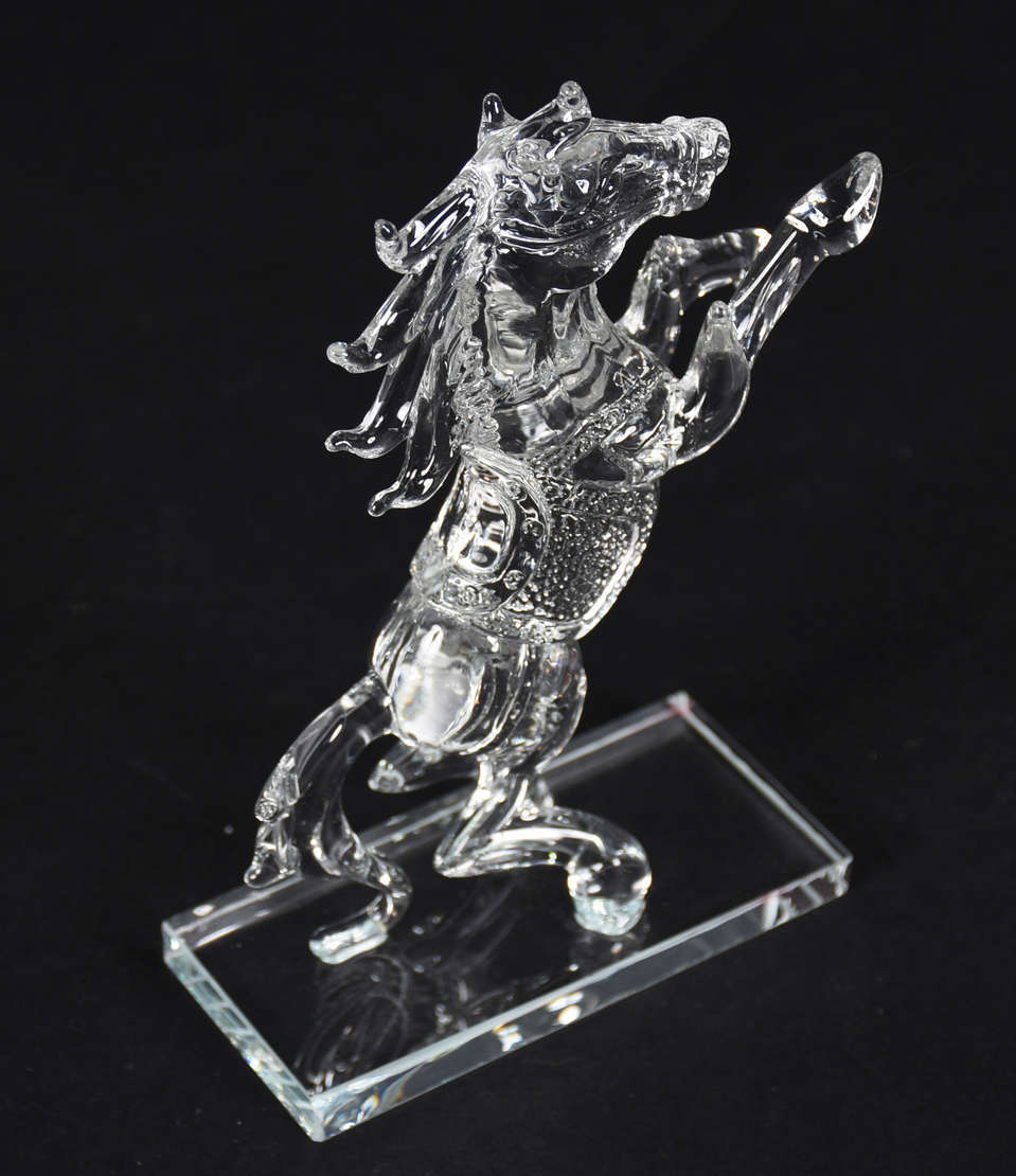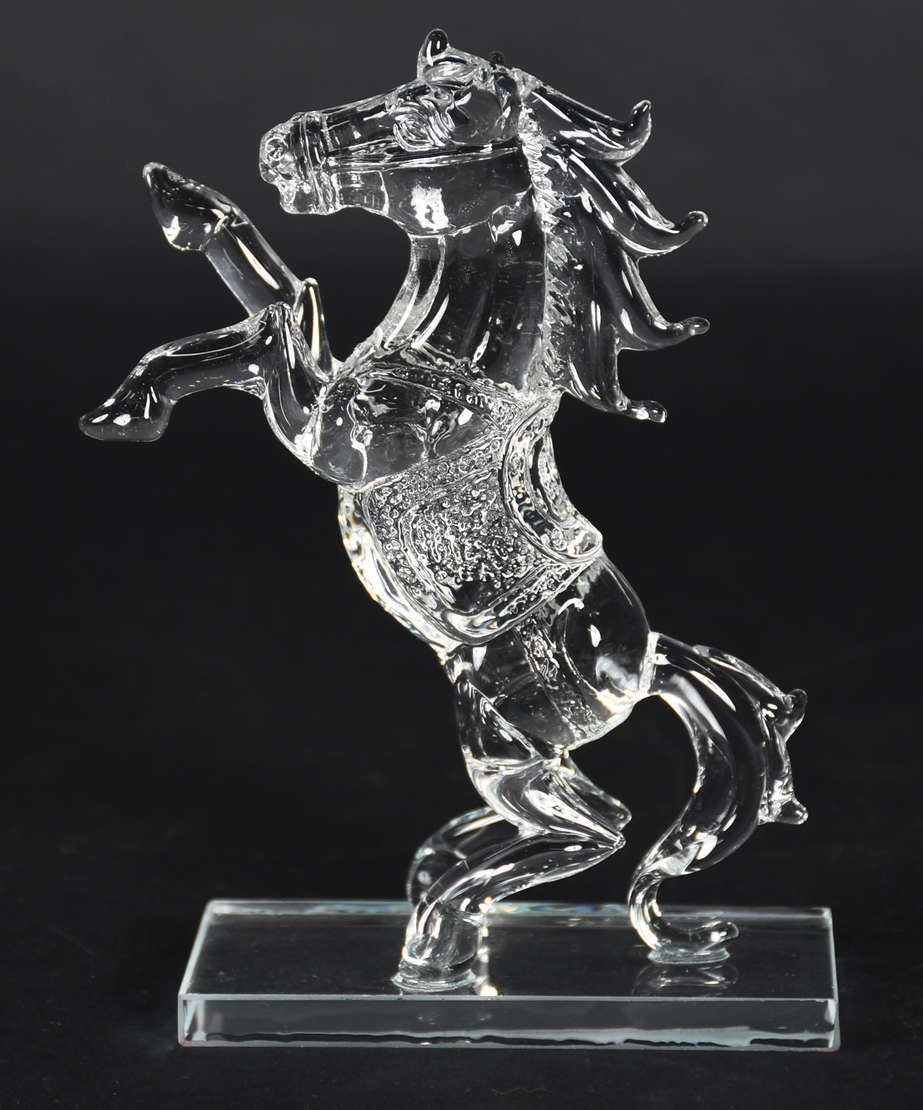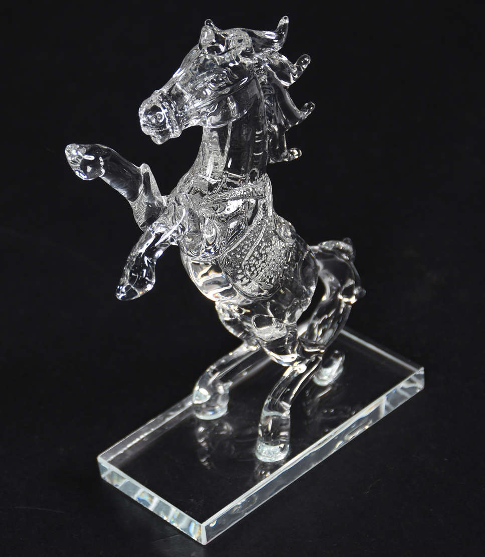 Escultura de resina de poliéster representando cabeça de cavalo. Assinada.