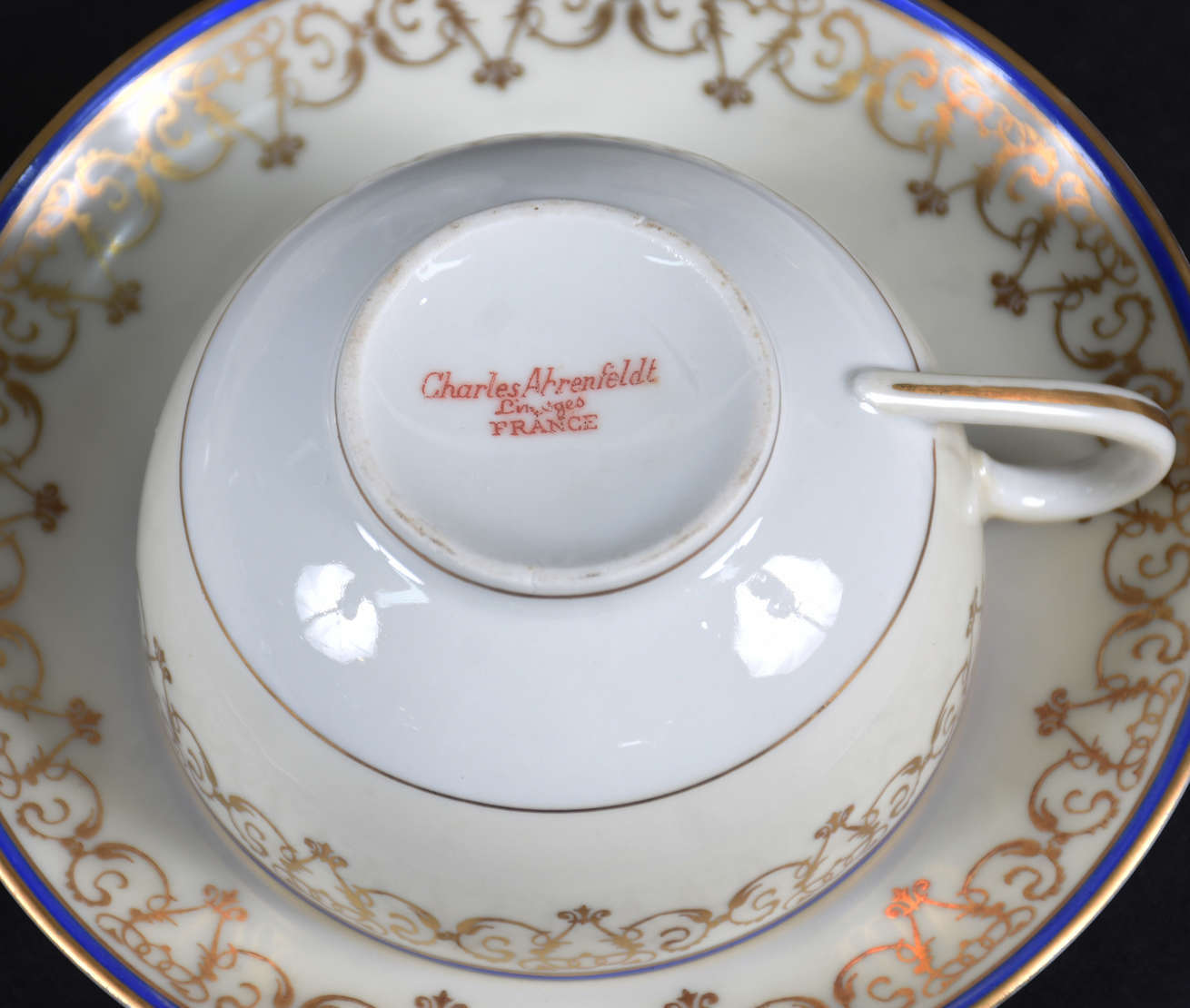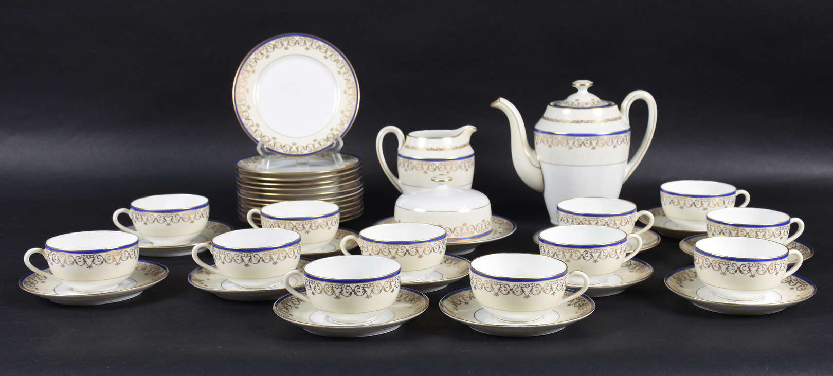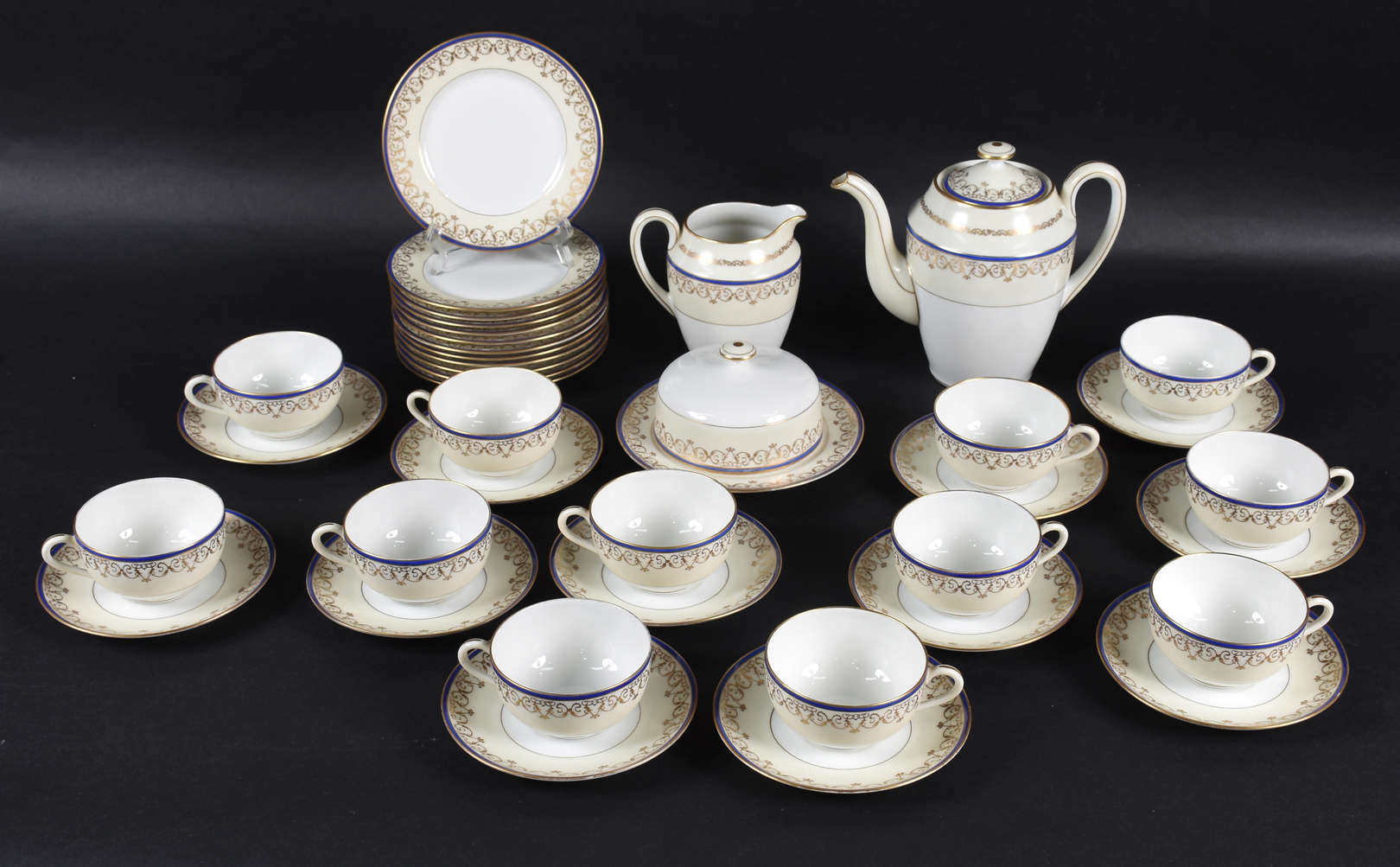 Conjunto de porcelana com 6 xícaras , leiteira e açucareiro.Total 8 peças. ( ouro com desgaste)