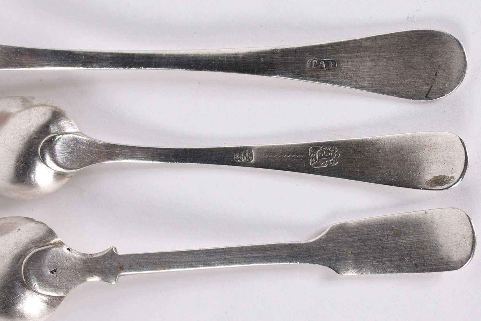 Quatro pratos de porcelana Companhia das Indias decorada com flores em policromia, "Família Rosa".(Um com lascado e f...
