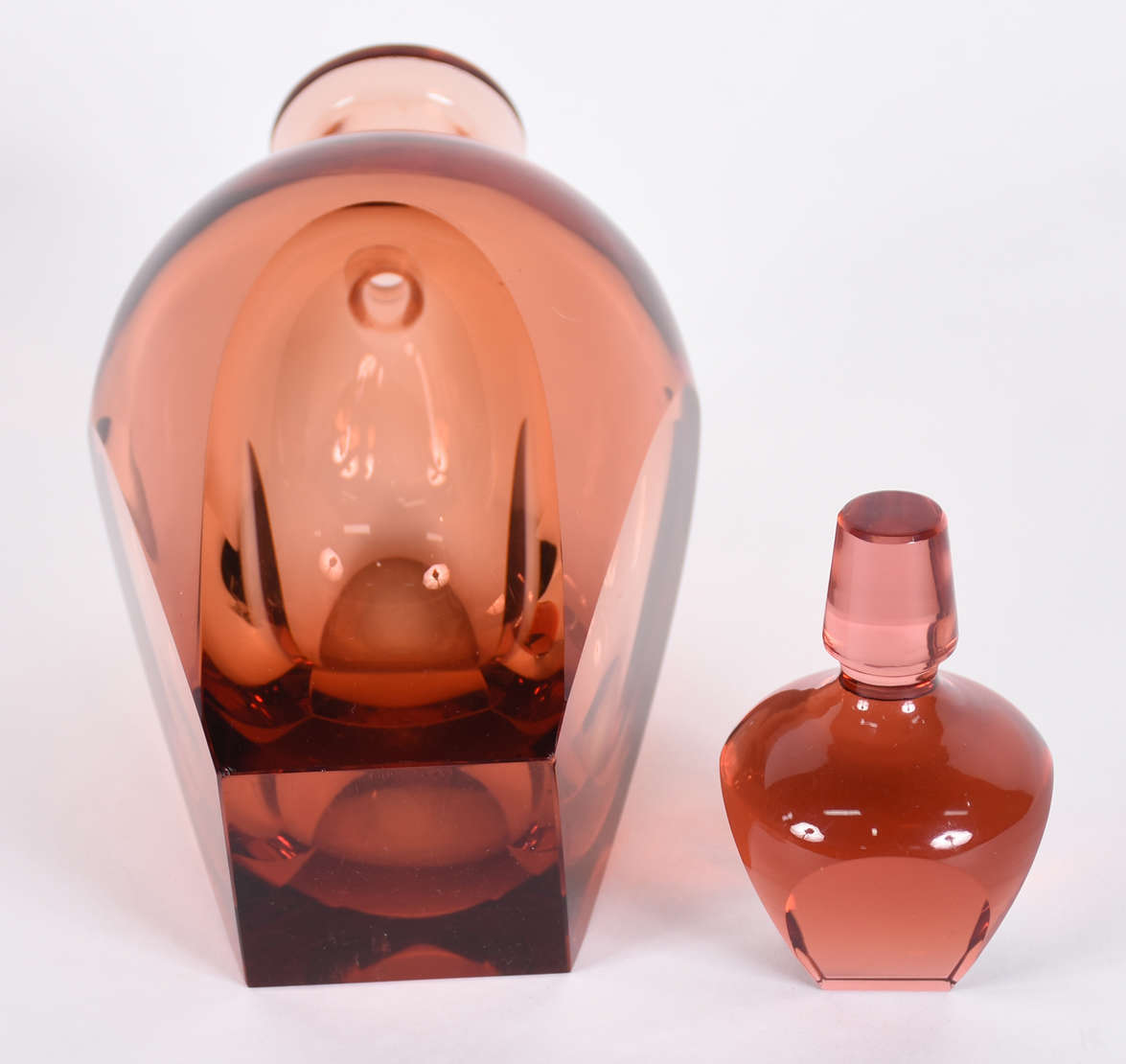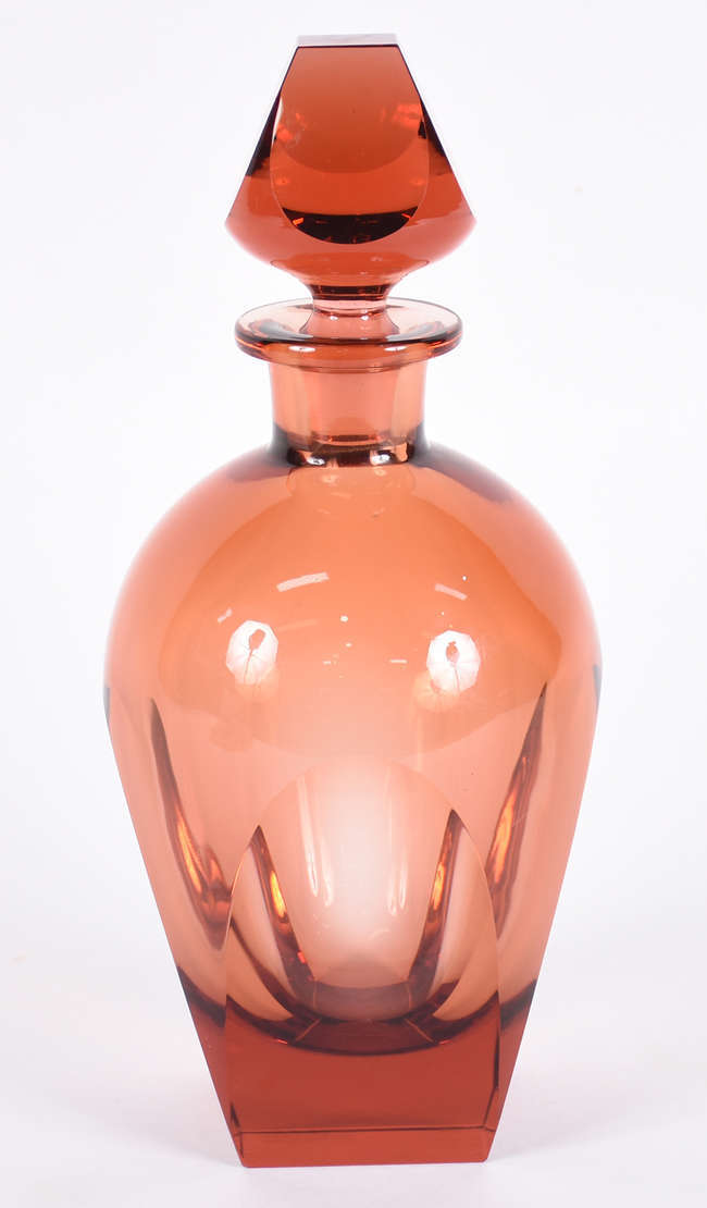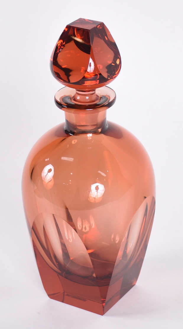 Travessa de cristal âmbar assinado em relevo Val Saint Lambert.