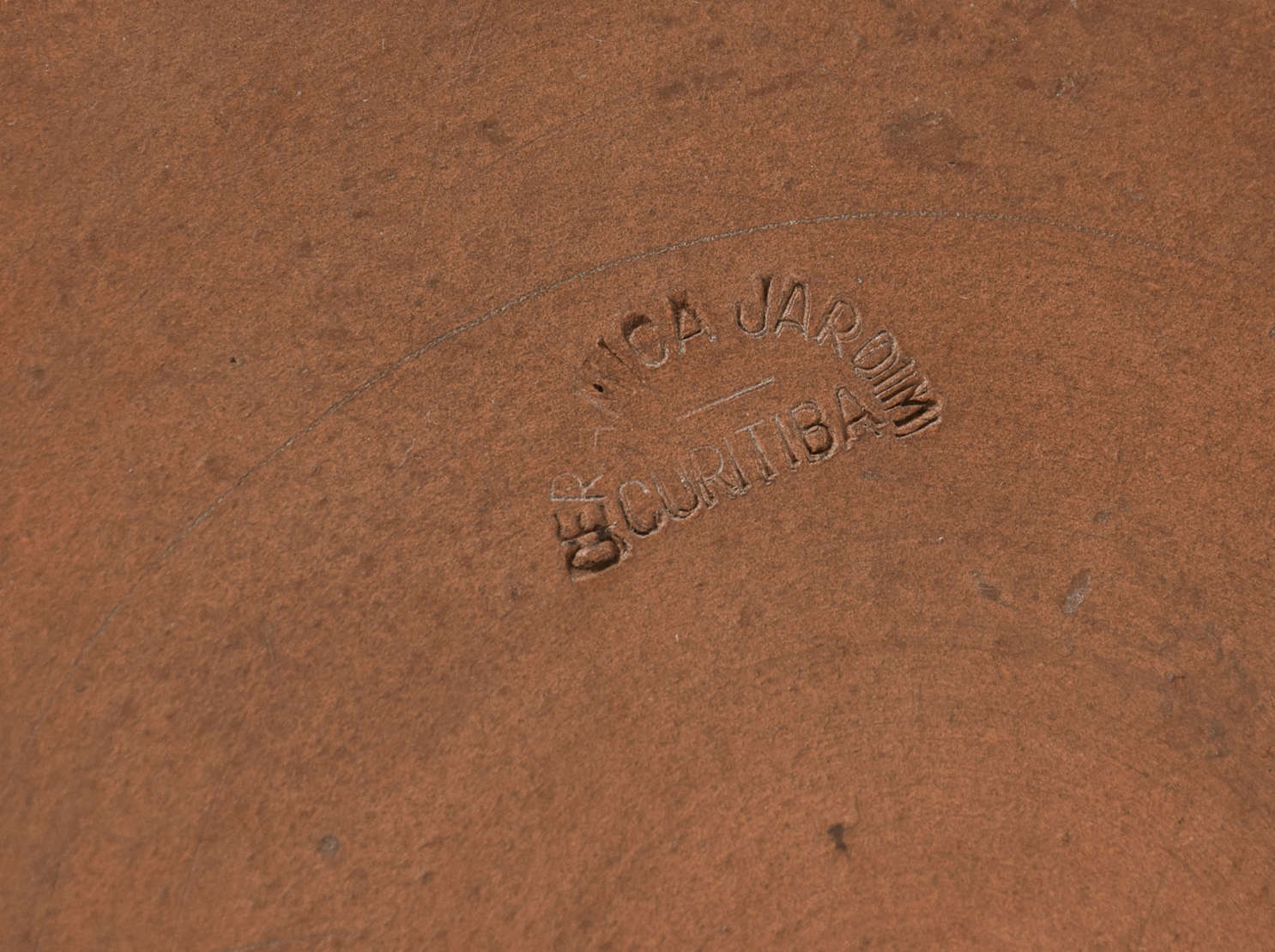 Dois potes de farmácia de porcelana branca pintadas á mão, assinadas na base.