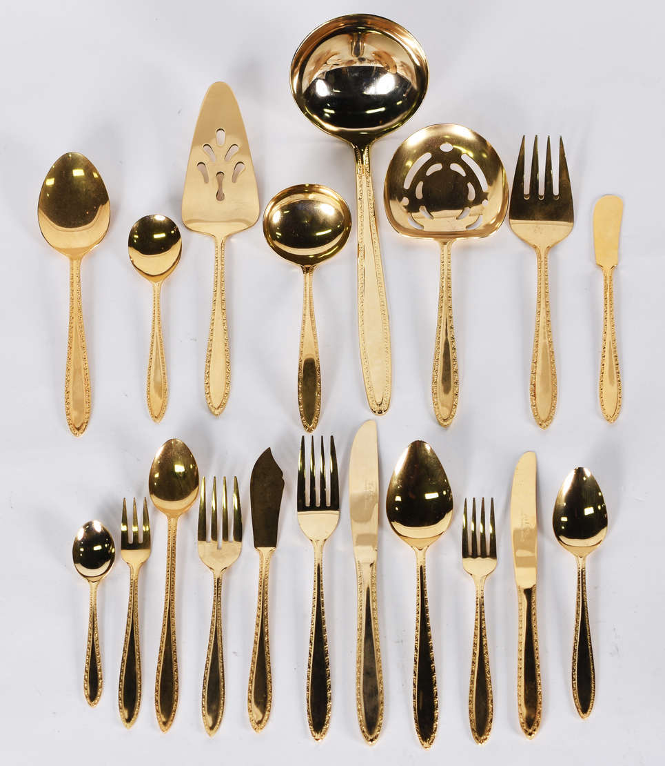 Faqueiro de metal prateado COMMUNITY composto de : 12 facas, 12 garfos e 12 colheres grandes; 12 garfos e 24 colhere...