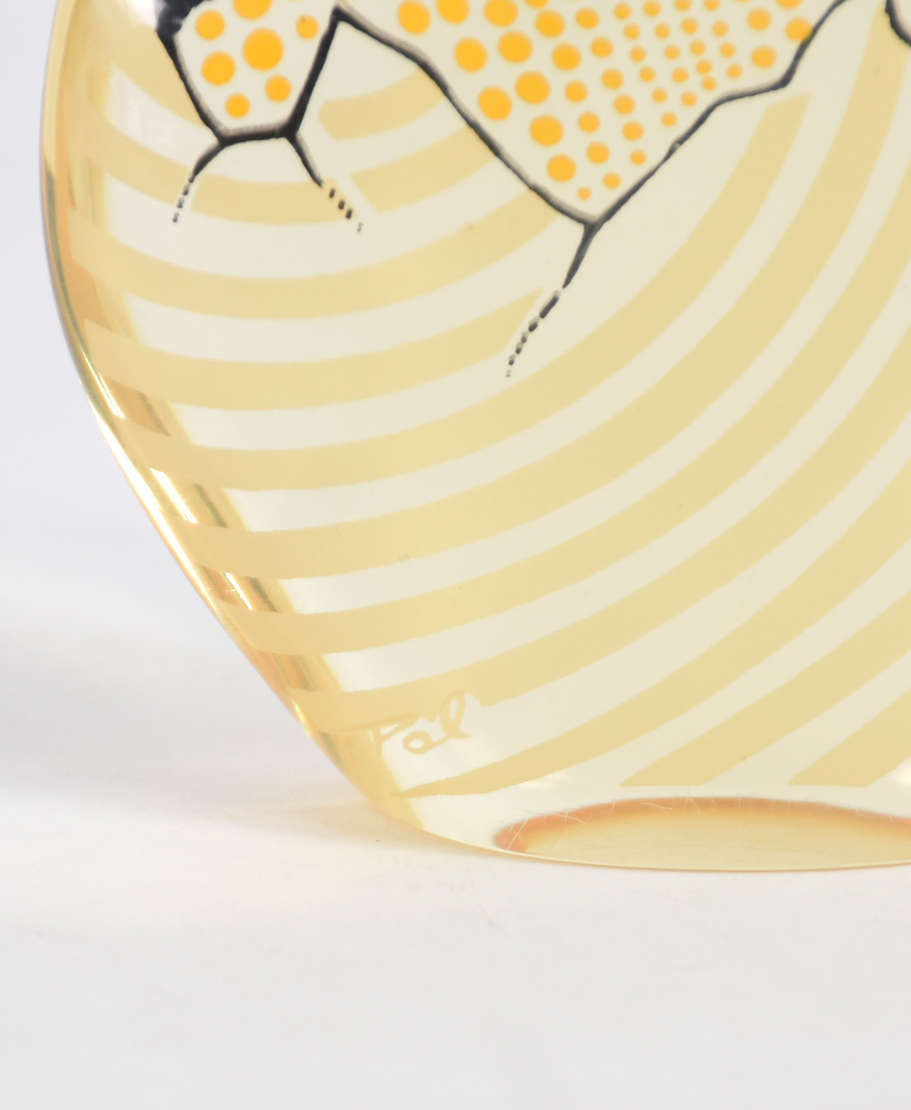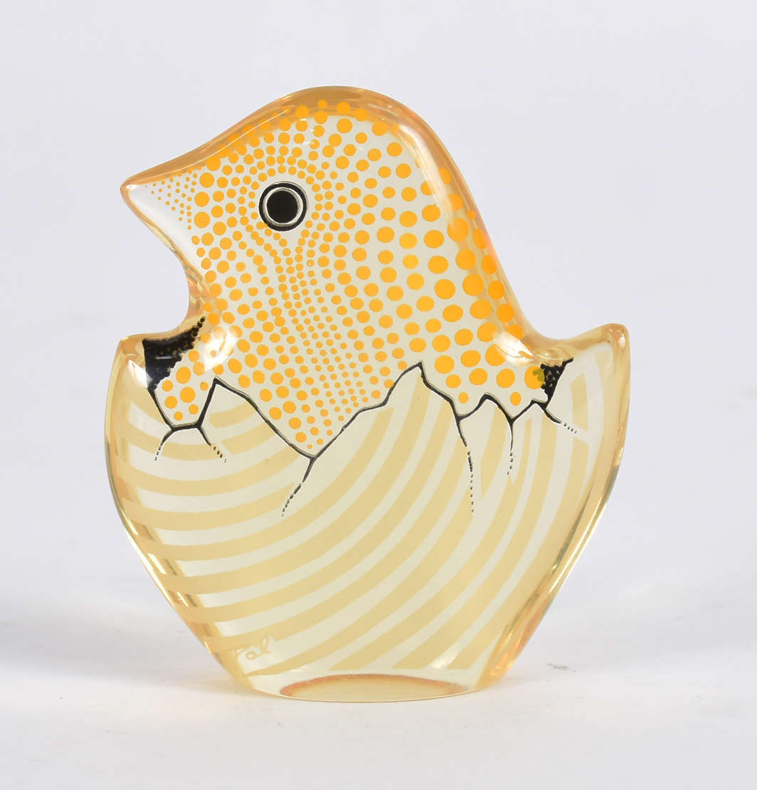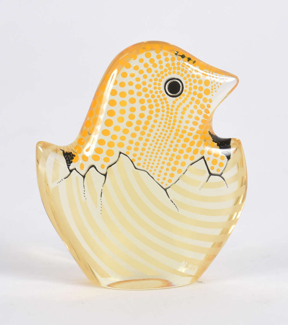 Escultura de resina de poliéster representando " pinto no ovo". Assinada.