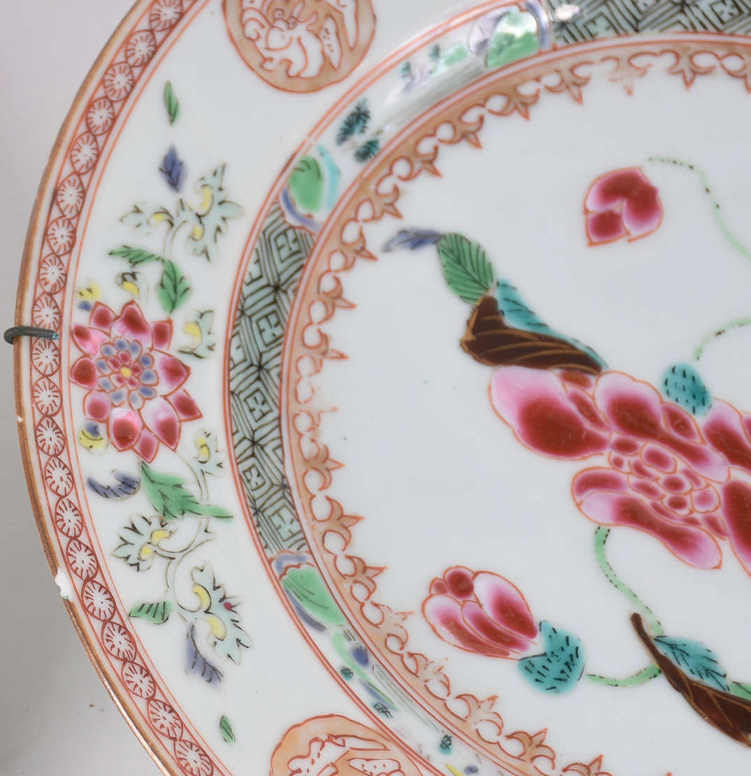 Dois pratos orientais, sendo: a) um comemorativo do Quarto Centenário do Descobrimento da Índia. Em porcelana da Chi...