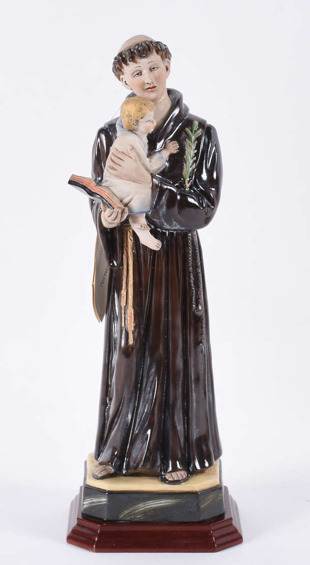 Estatueta de porcelana esmaltada branca com prata representando mulher.