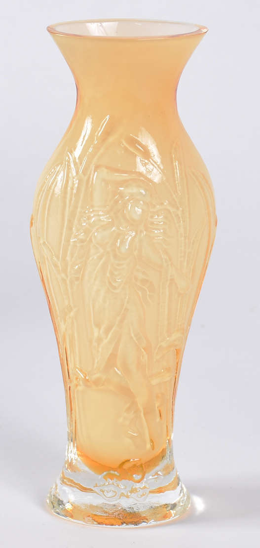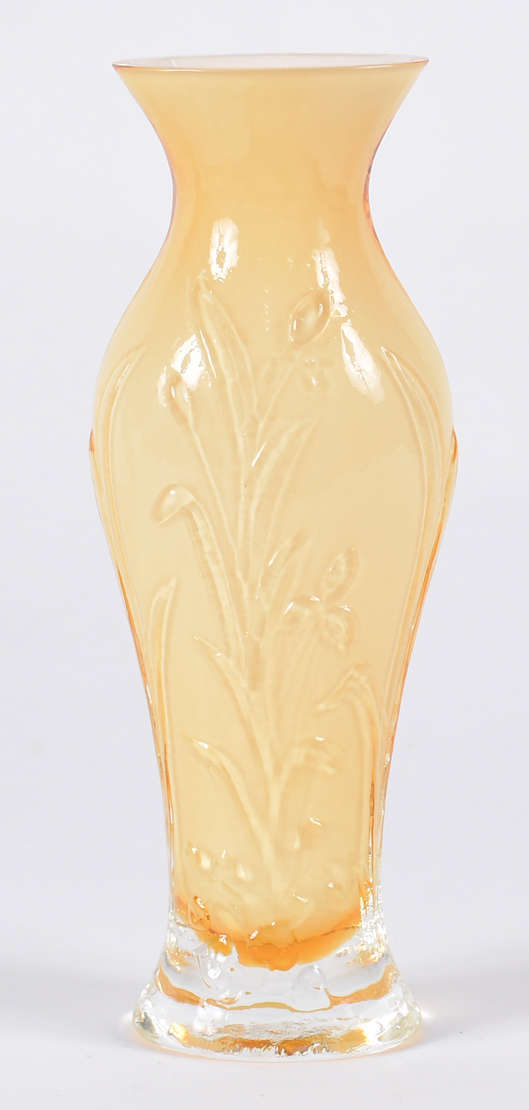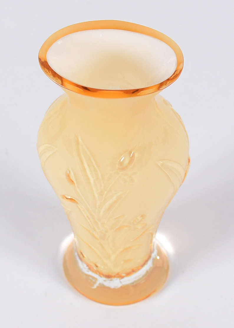 Delicado Vaso de porcelana japonesa CHIKUSA na cor branca, pintada à mão com flores e guirlandas em policromia. Marca...