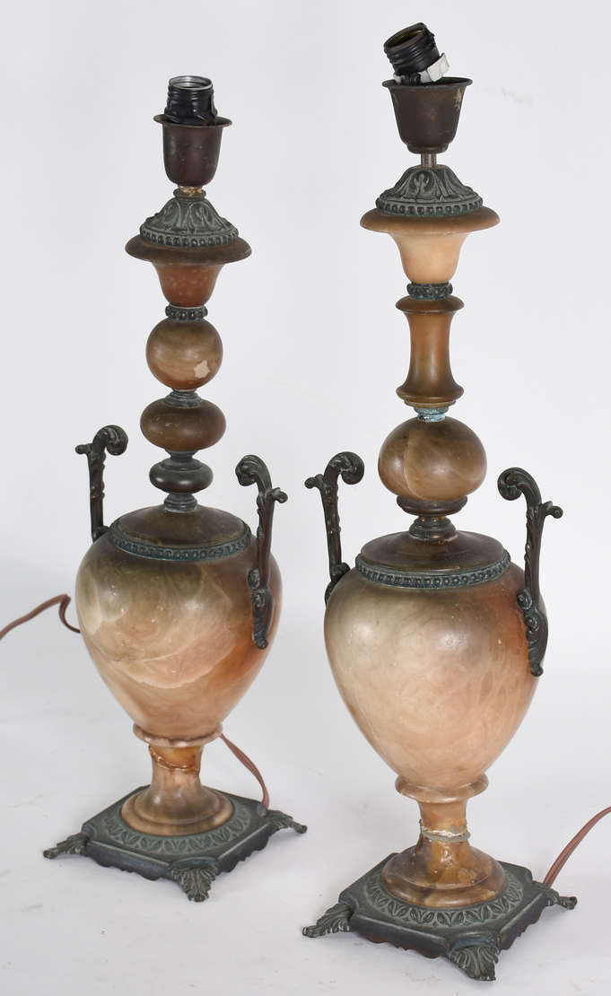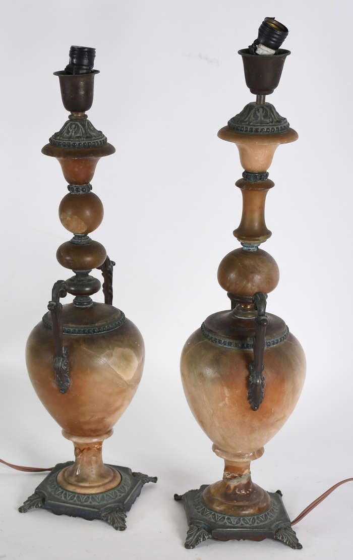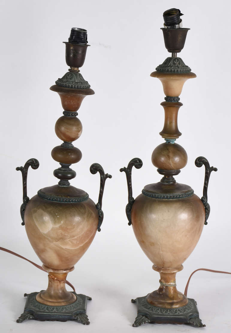 Par de abatjoures com coluna de metal , cúpulas pretas e arremate em jacarandá.