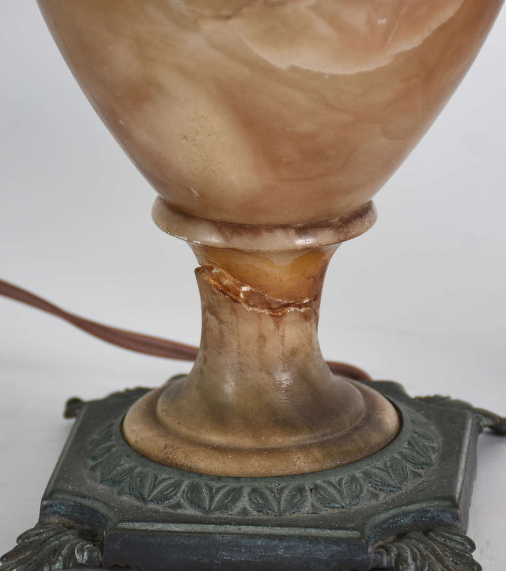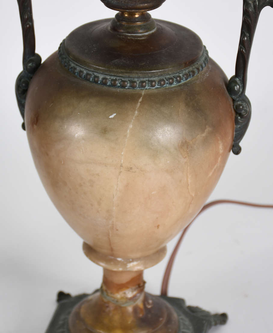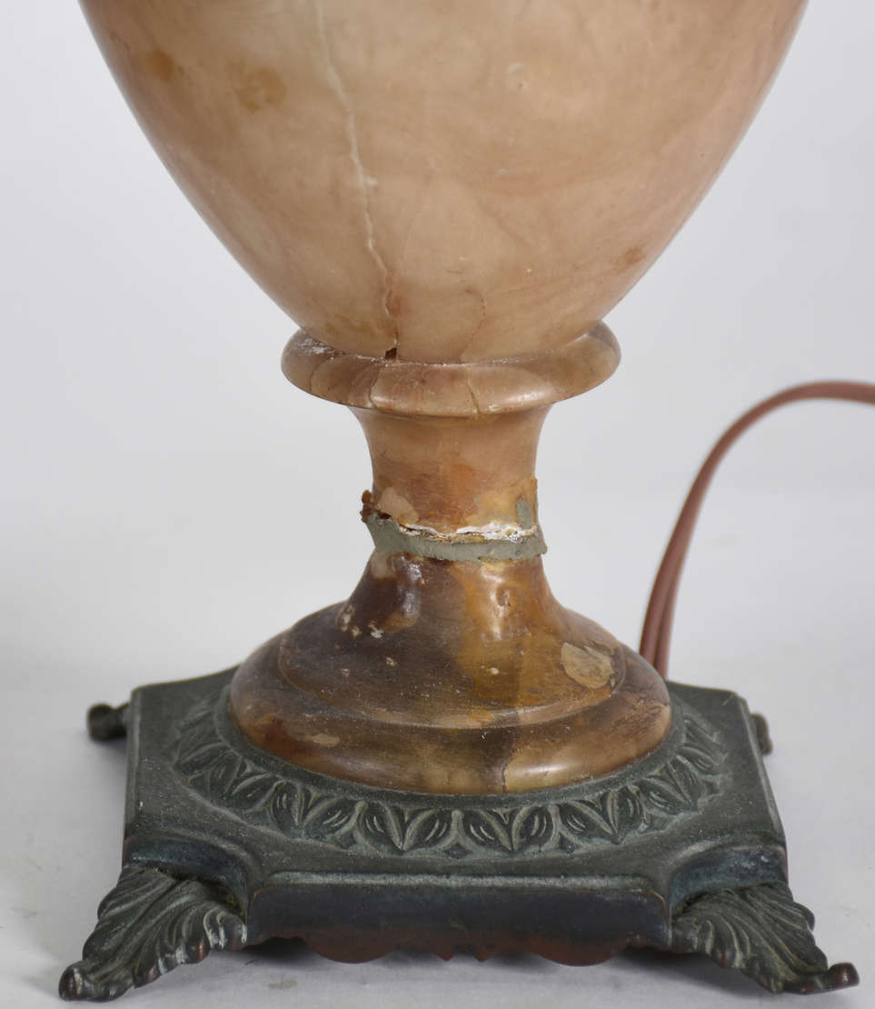 Abatjour representando figura feminina de prata de lei contrastada, pés vazados, base com monograma. Acompanha cúpul...