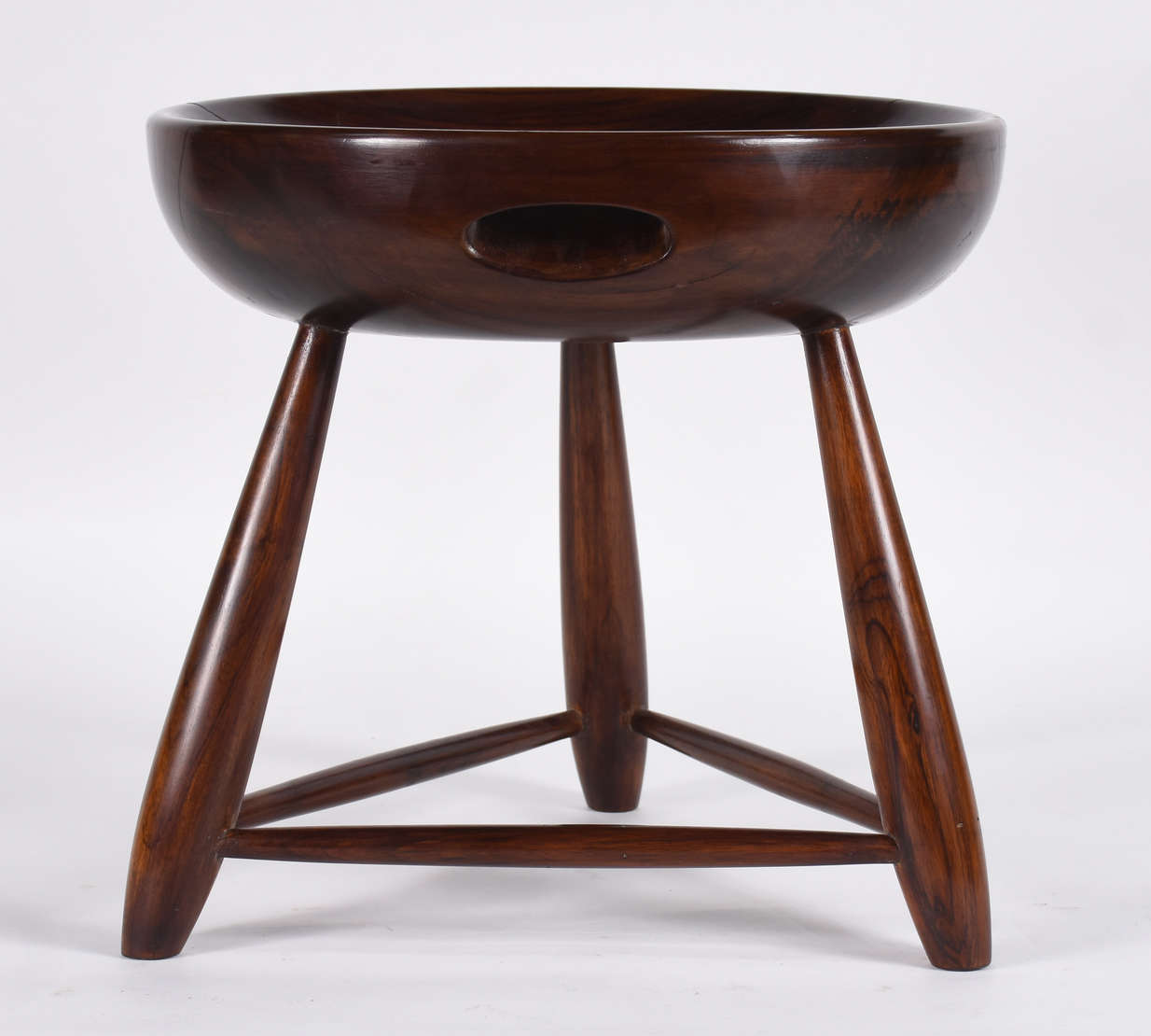 Móvel porta bibelot de madeira nobre, com tres platôs ligados por colunas torneadas. (de prender na parede).