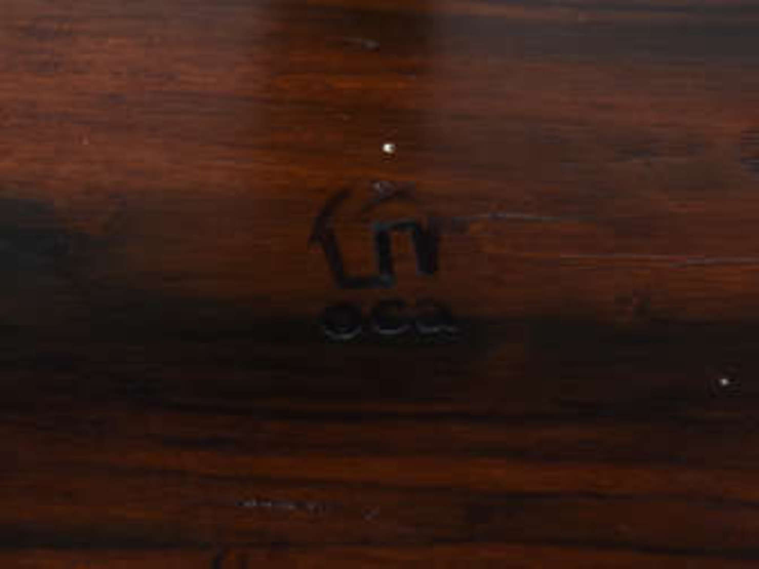 Mesa de resina oriental com entalhes em relevo.