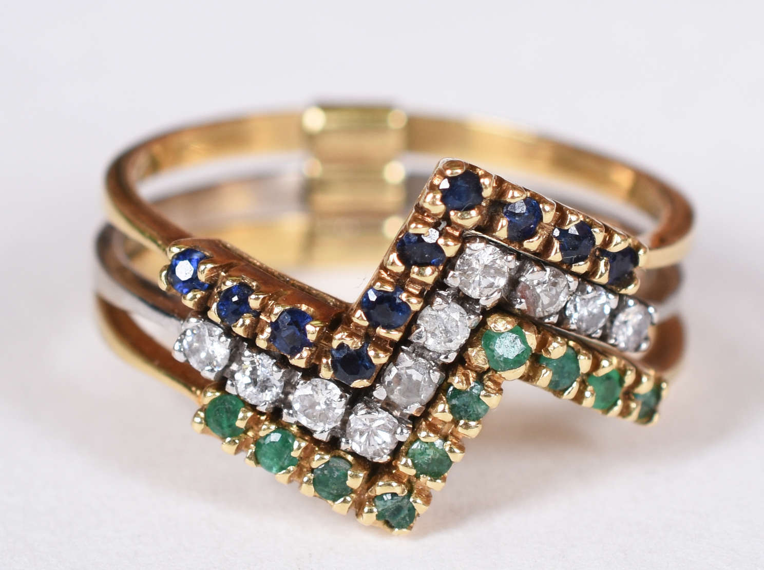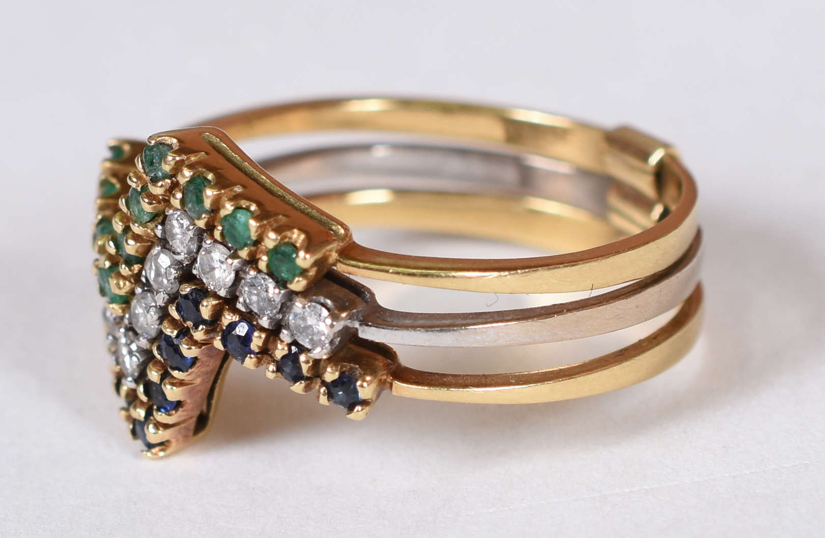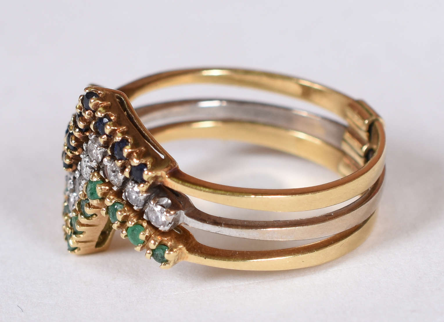 Meia aliança de ouro branco 18 k com 9 esmeraldas .Aro 11. (por questão de segurança a peça não se encontra na loja)