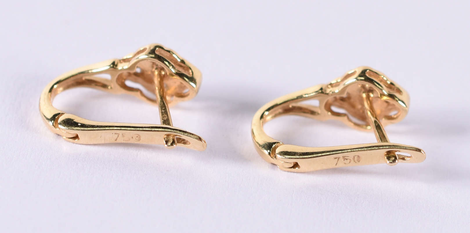 Par de brincos de ouro 18 k com 2 pérolas. (por questão de segurança a peça não se encontra na loja)