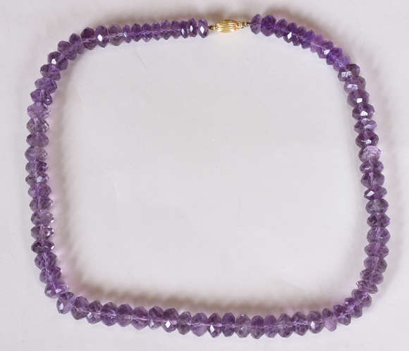 Colar de contas de ametistas, com fecho de ouro 18 k .(Por questão de segurança a peça não se encontra na loja)