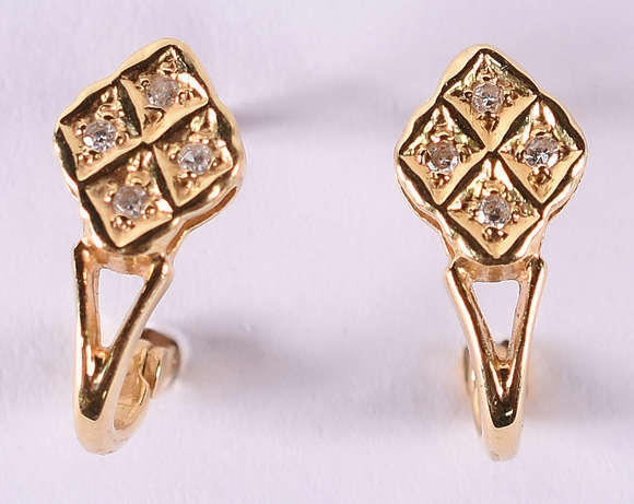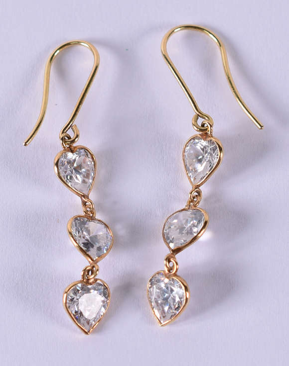 Par de brincos de ouro 18 k com safiras brancas. (por questão de segurança a peça não se encontra na loja)