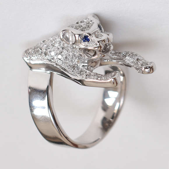 Anel "pantera" de ouro branco com 0,80 pontos de brilhantes aproximadamente. Aro 10,5. (Por questão de segurança a pe...