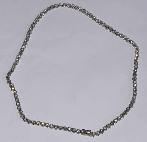 Gargantilha de ouro branco e 99 pedras brilhantes com 17,50 cts aproximadamente. (Por questão de segurança a peça não...
