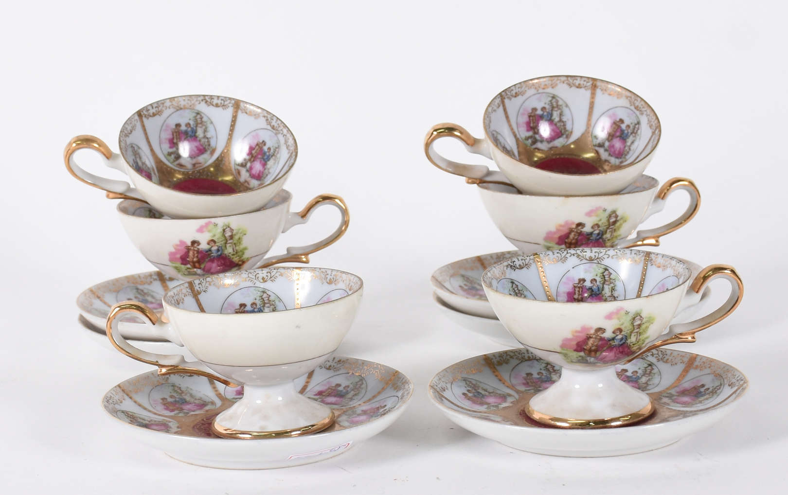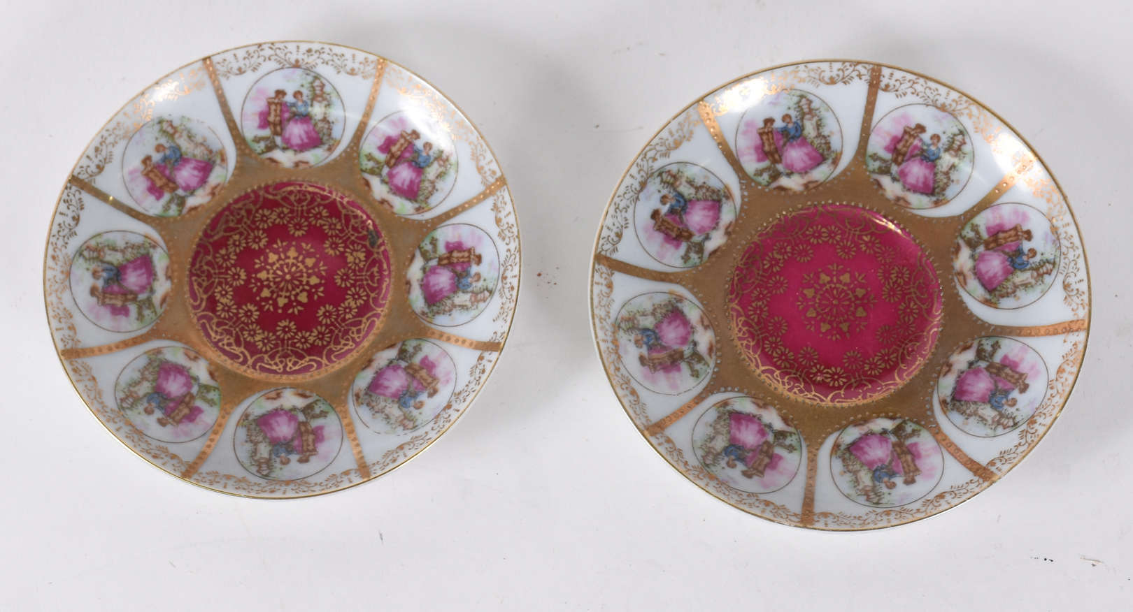 Conjunto de 12 xícaras de café com pires (sem marca) e 12 pratinhos para bolo de porcelana NORITAKE.