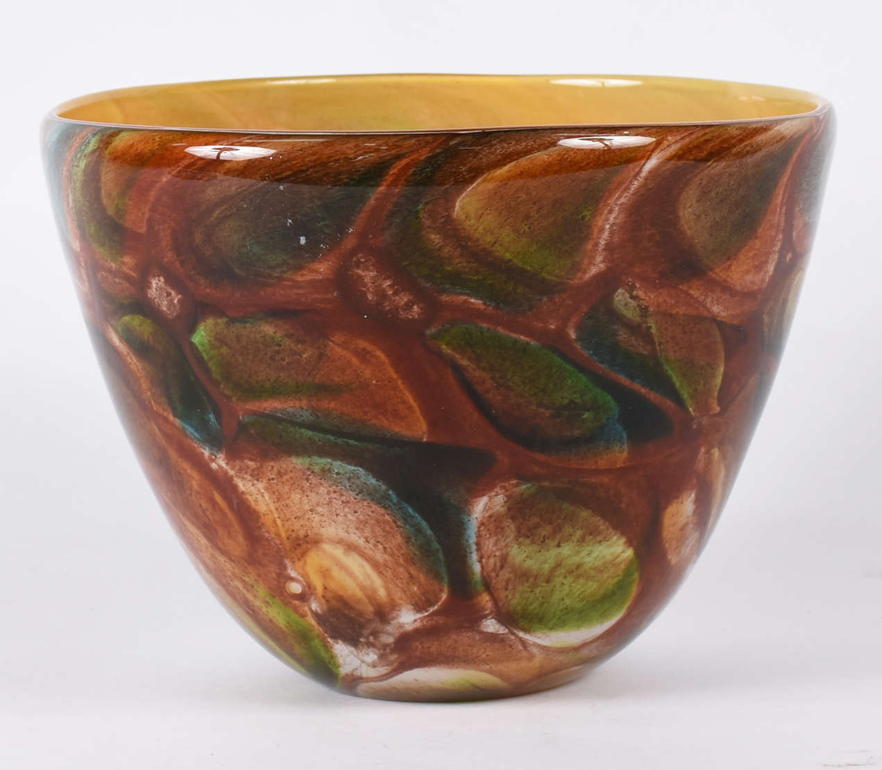 Conjunto de saladeira e 12 bowls de vidro lilás na forma de concha.