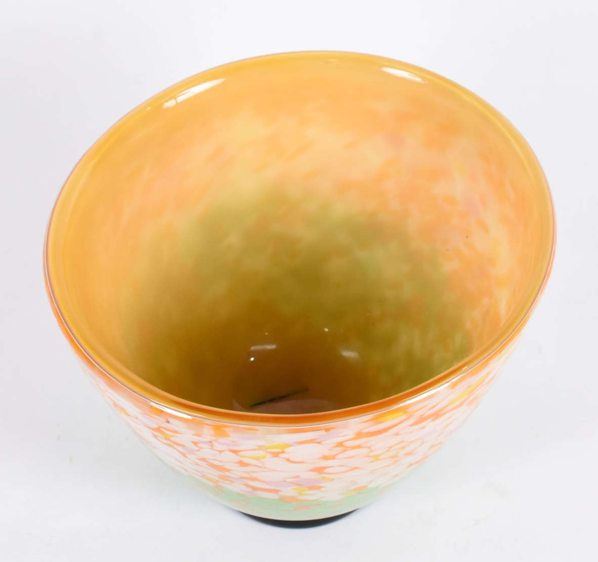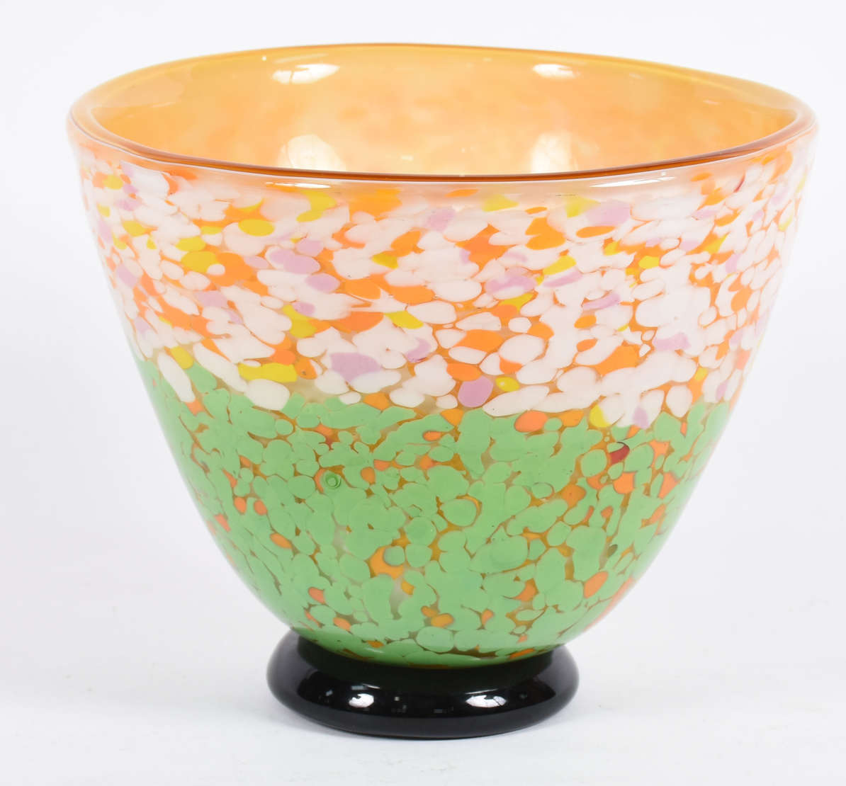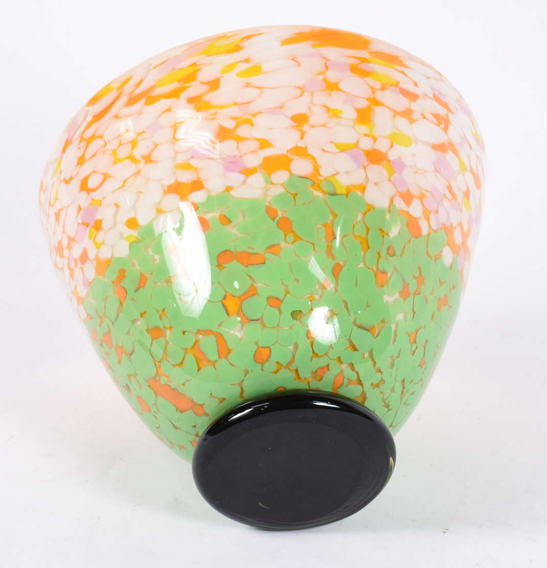 Vaso de murano MOLINARI na cor negra com mesclas coloridas, assinado.