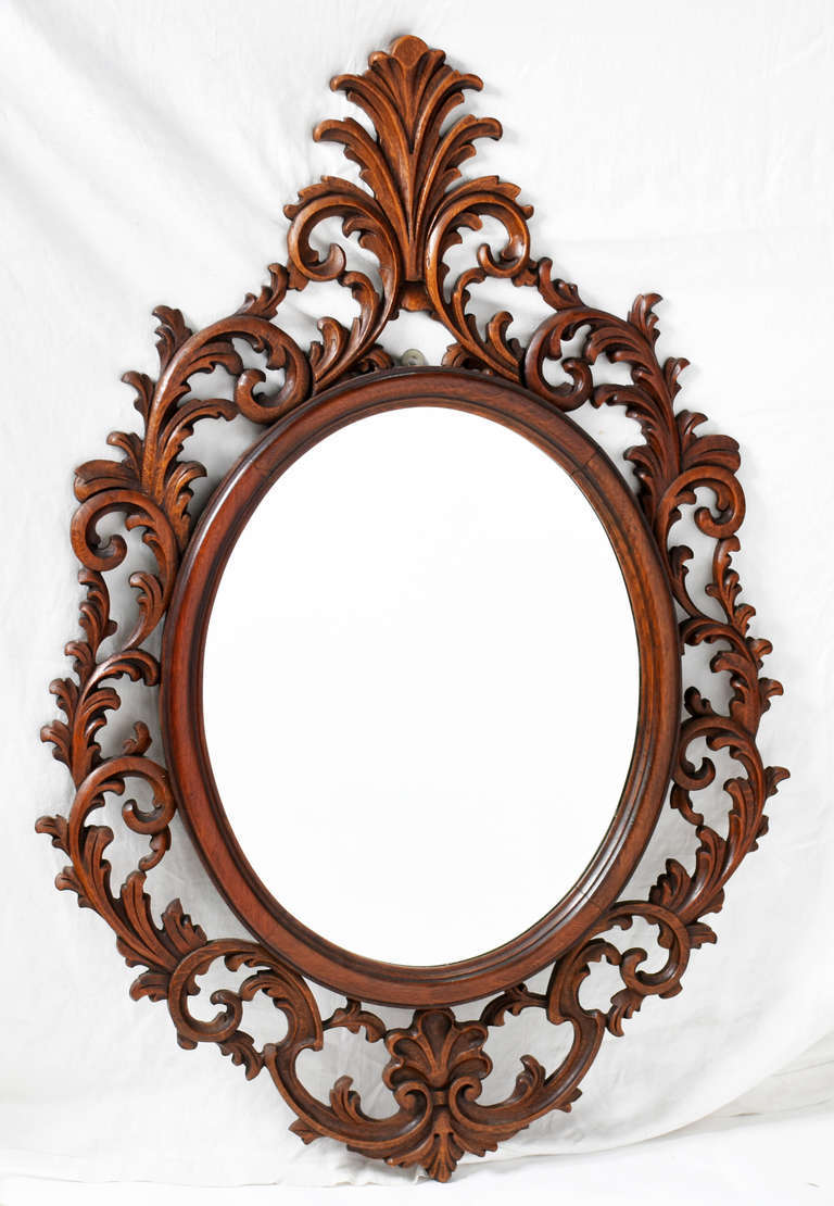 Cômoda de madeira nobre com 5 gavetas tendo puxadores de metal, encimada por espelho de cristal bisotado com moldura ...