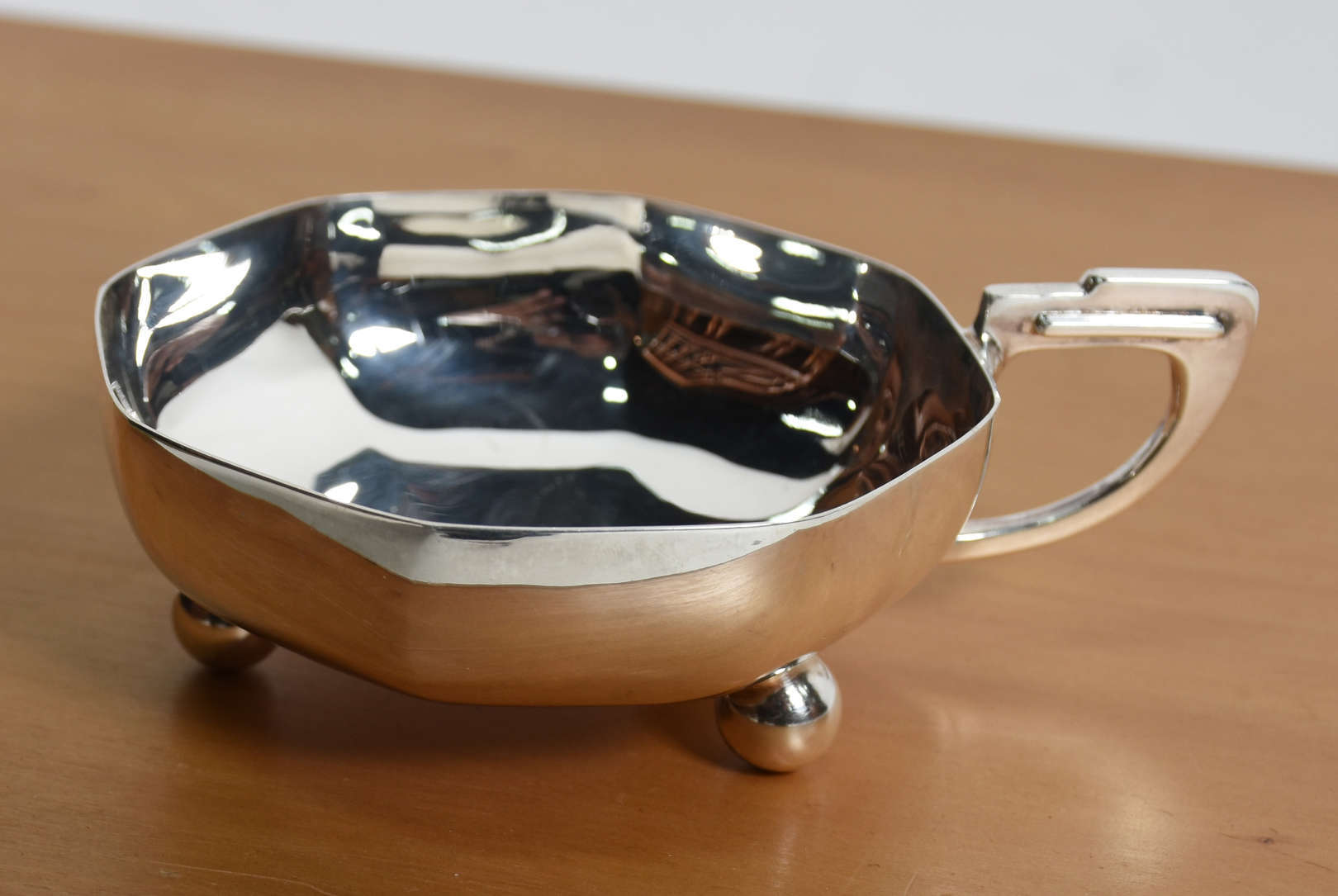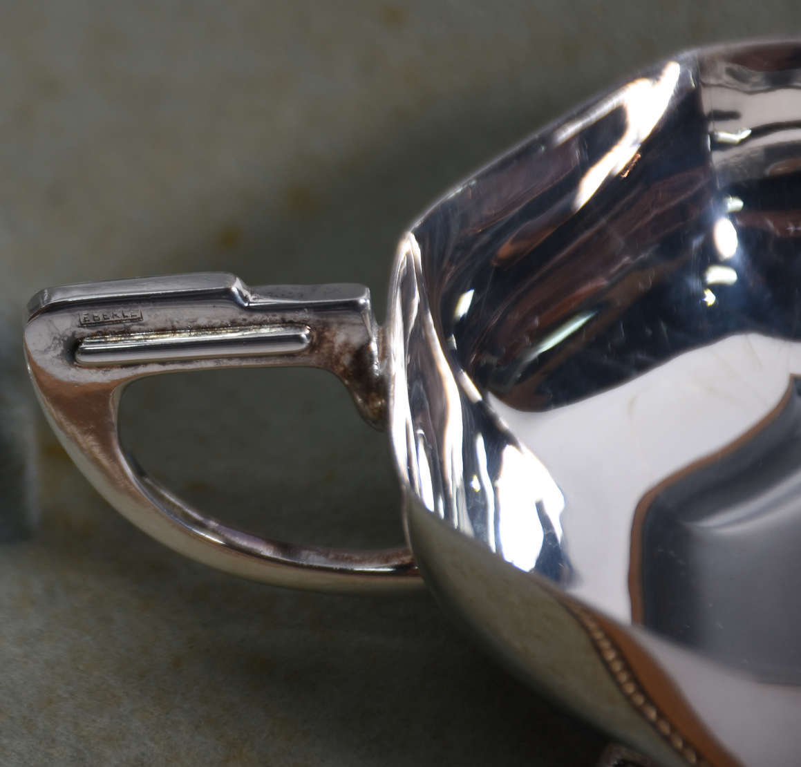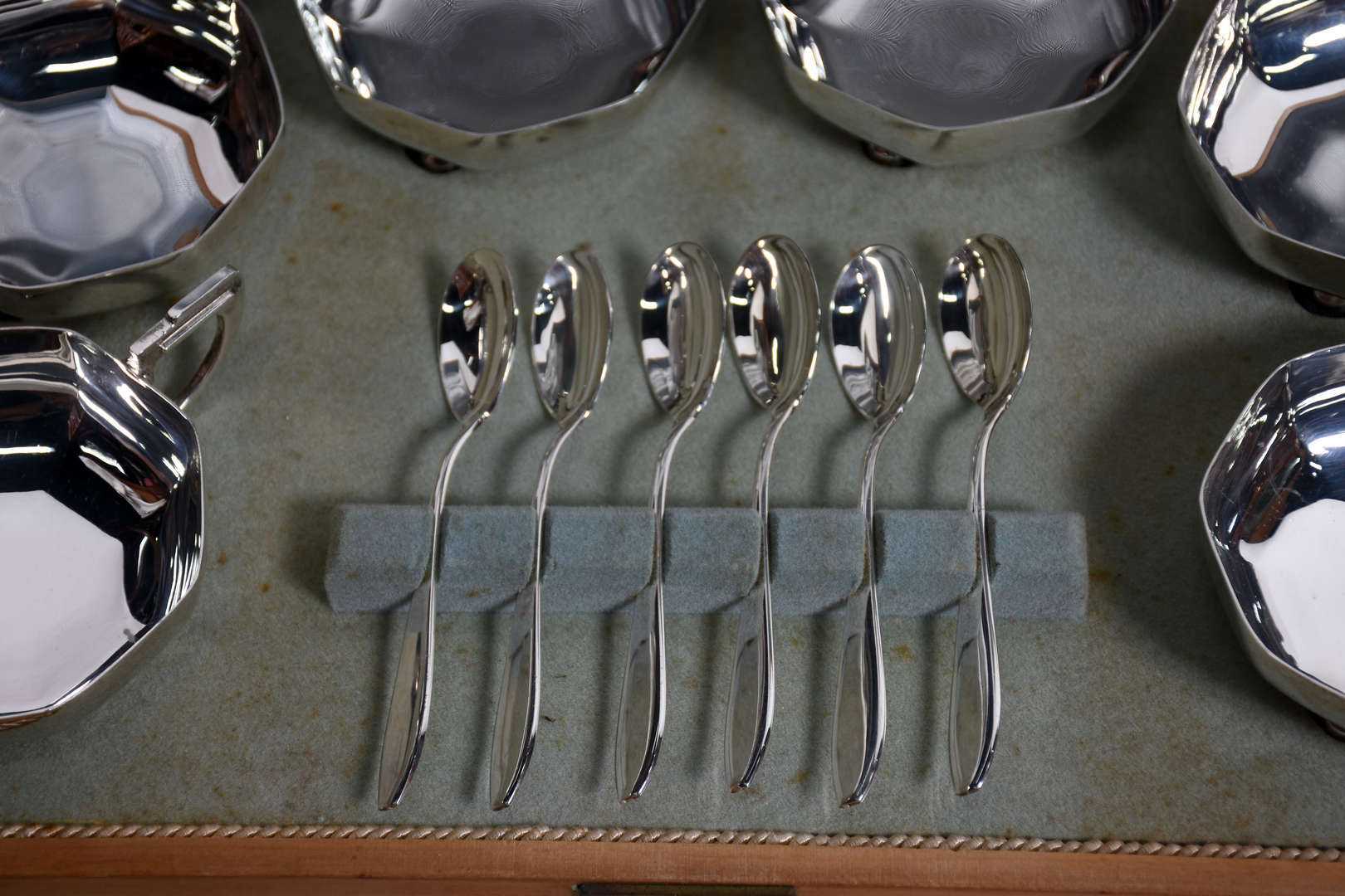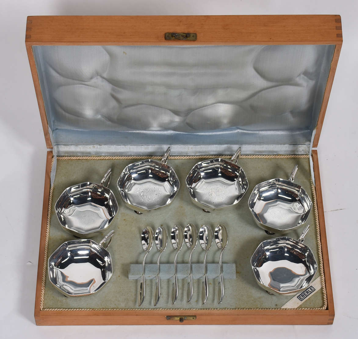 Conjunto para sorvete de metal prateado, no estojo.
