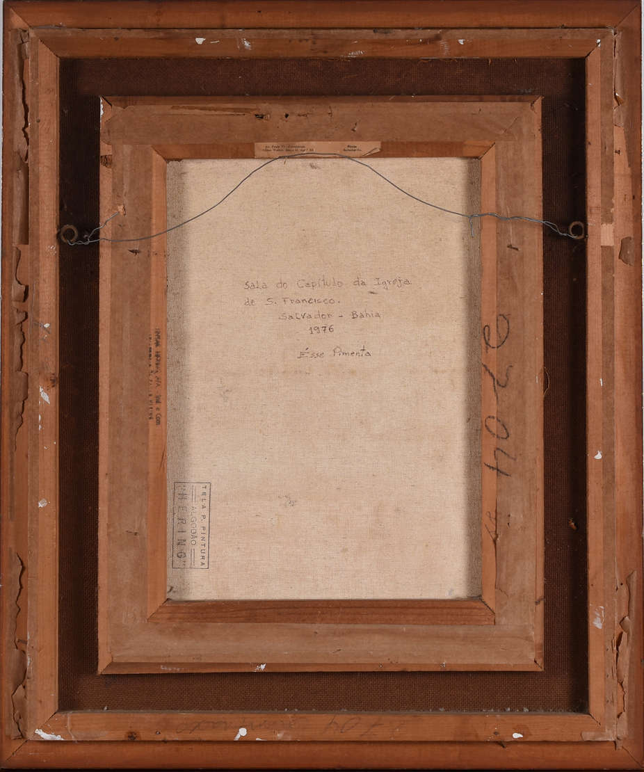 Quadro representando "Santa Ceia" de estuque policromado. Medida externa com moldura 62 x 75