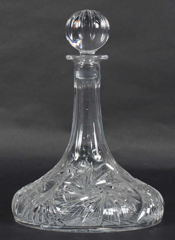 Garrafa de navio de cristal tcheco lapidado. Dita "de navio" pois tem a base larga, o que a impede de tombar com o ba...