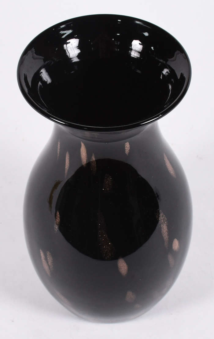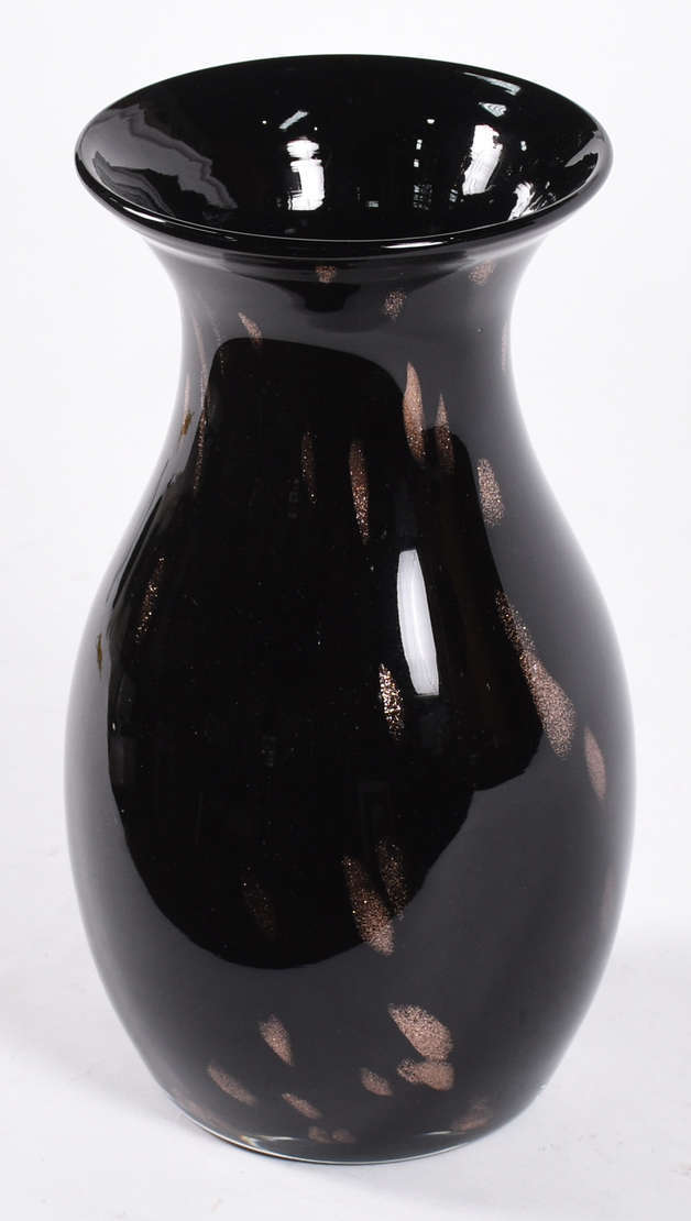 Vaso de murano MOLINARI na cor negra com mesclas coloridas, assinado.