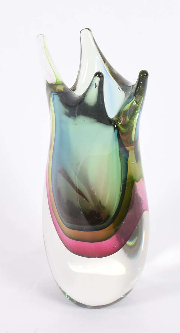 Vaso de murano MOLINARI na cor negra com mesclas coloridas, assinado.