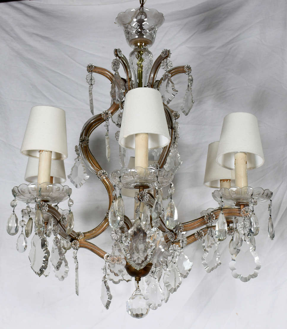 Lustre para 6 luzes de cristal com pingentes lapidados.