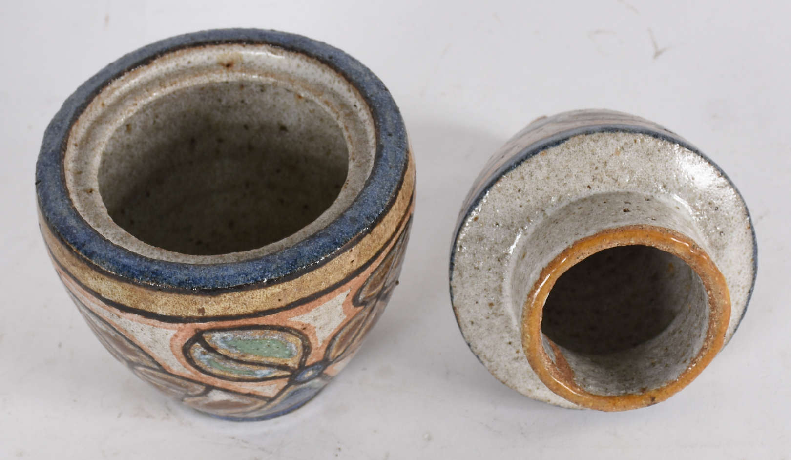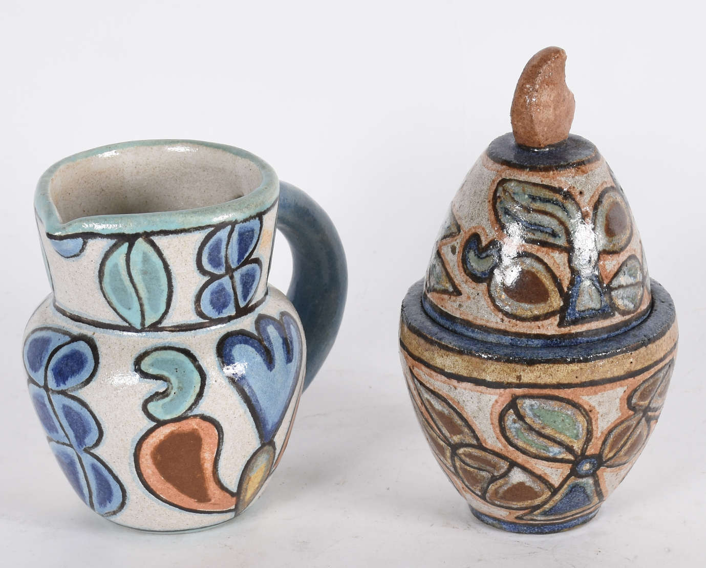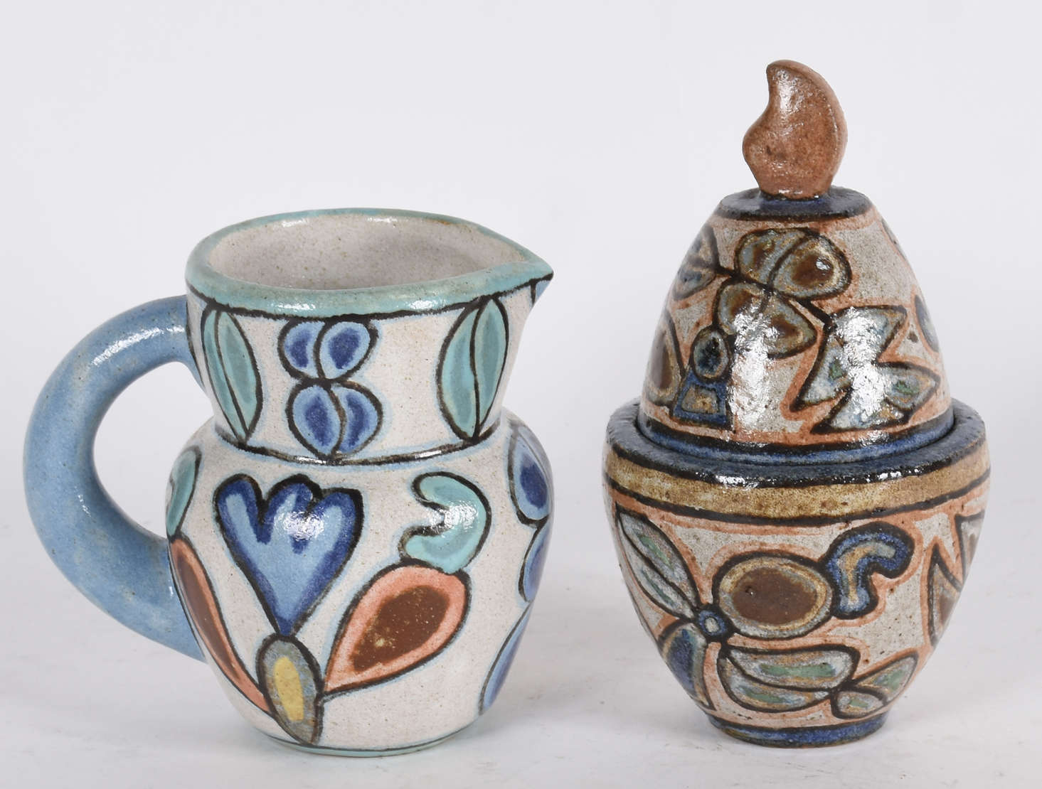 Duas peças de cerâmica representando: Jarro e potiche em forma de cajú. Marcadas na base.