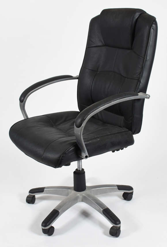 Cadeira para escritório de curvim preto, giratória. (com desgastes)