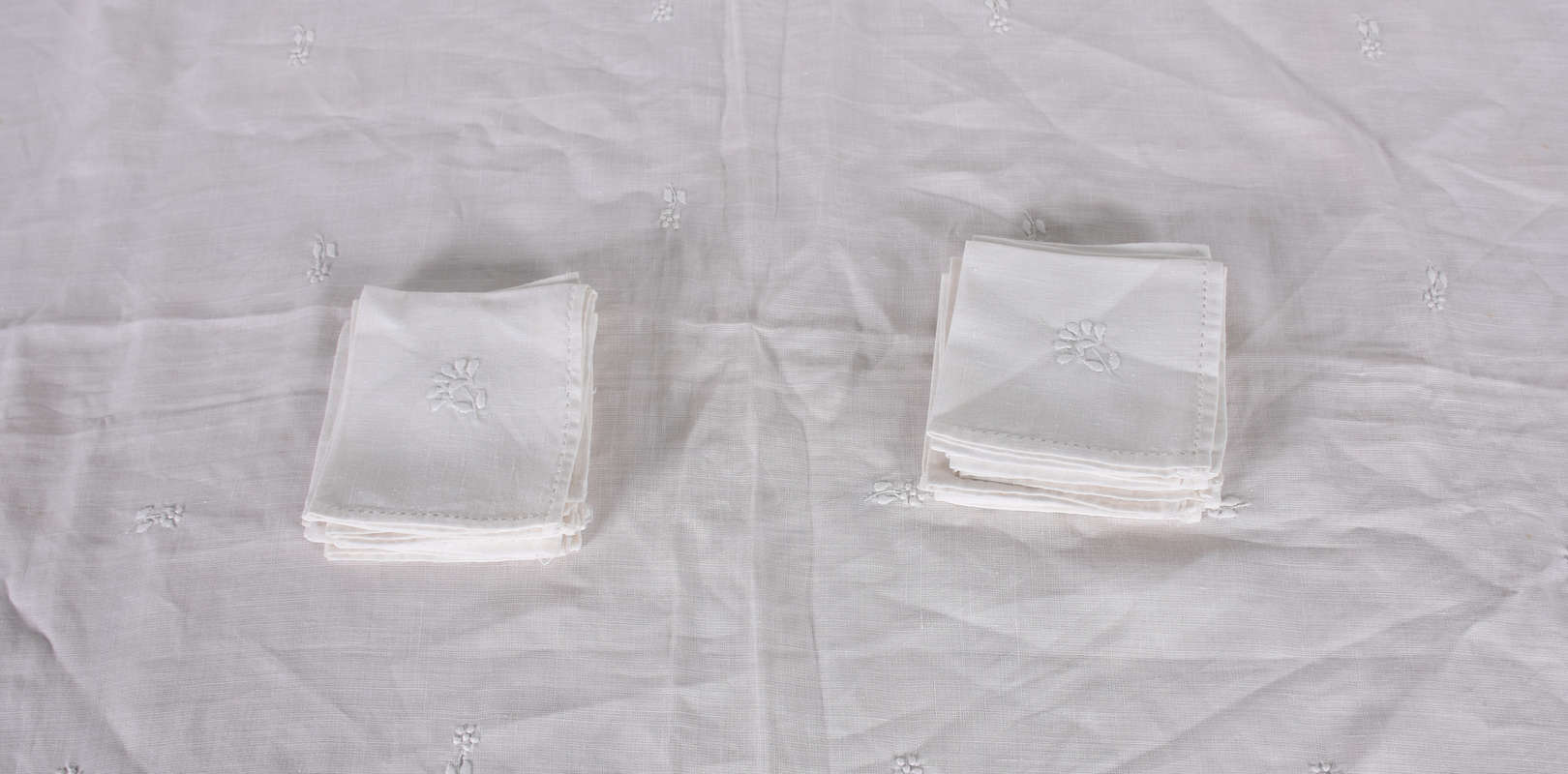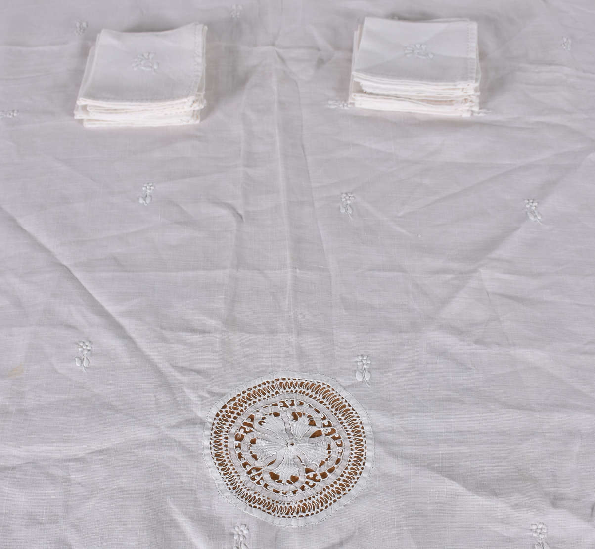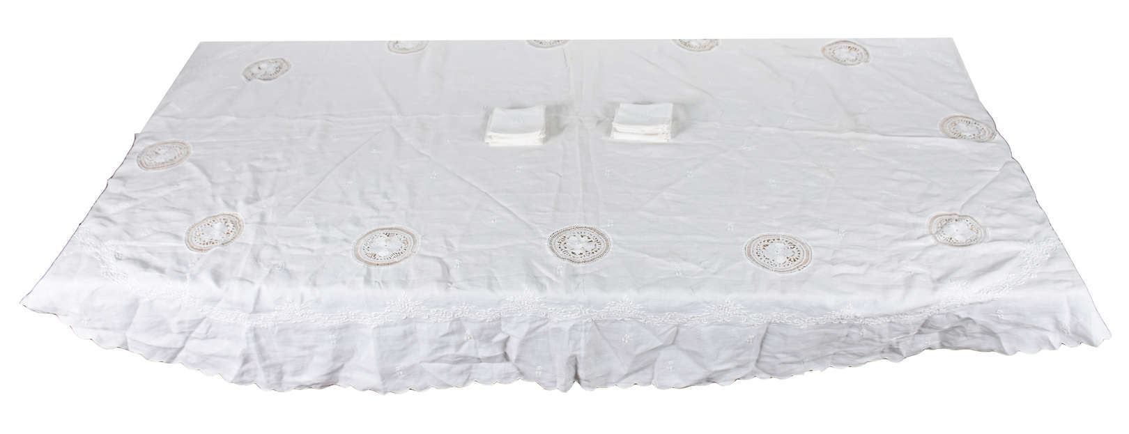 Elegante aparelho de jantar de porcelana polonesa TIELSCH, na cor branca com flores em policromia e frisos dourados, ...