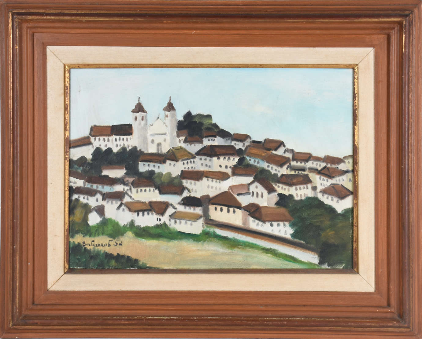 Gravura francesa com moldura entalhada.
